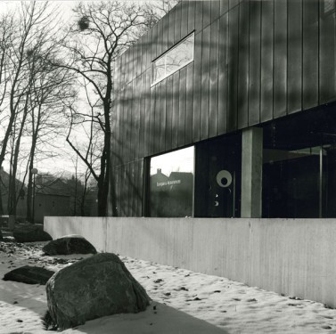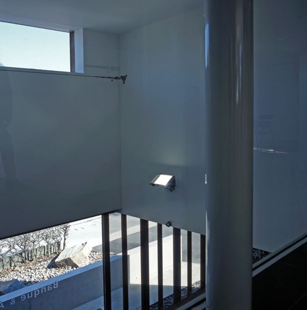 - Le projet consiste en la transformation profonde d’une agence vétuste et exiguë. L’espace intérieur est complètement remodelé et augmenté d’une travée. La partie publique du programme - guichets, comptoir, automates -, s’expose au travers de sa longue vitrine sur rue. Le vide central et les percements mettent à jour la dynamique interne du volume et permettent d’établir une série de relations à l’environnement proche : les abords à la fois anticipent et prolongent le bâtiment. Les voitures sont parquées à la périphérie de l’agence et le visiteur est conduit à l’entrée par un chemin qui longe la salle des pas perdus.[...]