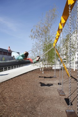 - Le projet se développe comme un espace partagé, dédié aux loisirs et à la mobilité douce, il permet néanmoins l’accès des véhicules à vitesse lente pour un usage local. A l’ancienne avenue 19ème bordée de platanes, il substitue une série de séquences urbaines et paysagères distinctes par leur caractère et le type d’usage qu’elles proposent : poches végétales traitées comme des bosquets ombragés, espaces d’assise multipliés, balançoire géante et espace ludique en forme de petit terril, solarium équipé de chaises longues, et grande esplanade face à la gare, ou prendront place les terrasses des cafés.[...]