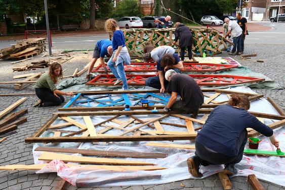 - construction d'une structure d'accueil éphémère en matériaux récupérés pour les visiteurs du parcours d'artistes de Profondsart et Limal ayant eut lieu les week-end du 25, 26 septembre et du 2,3 octobre 2021