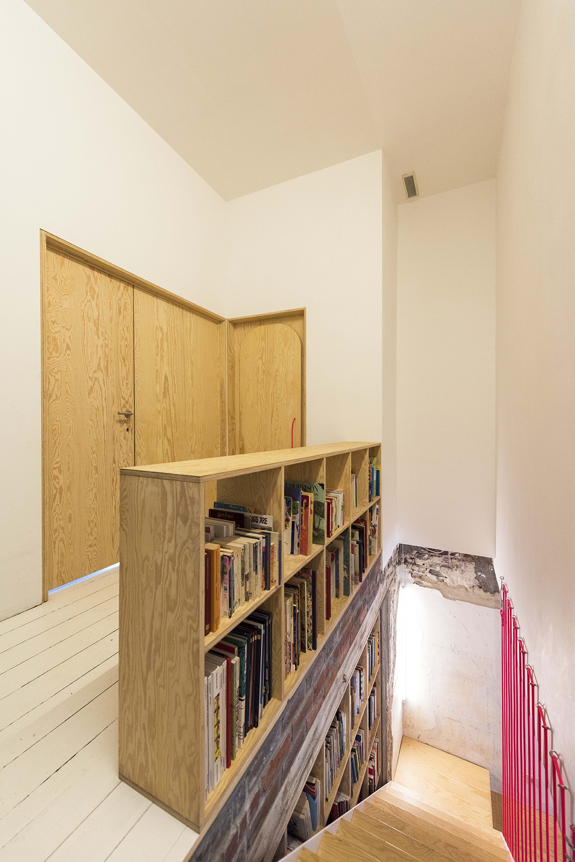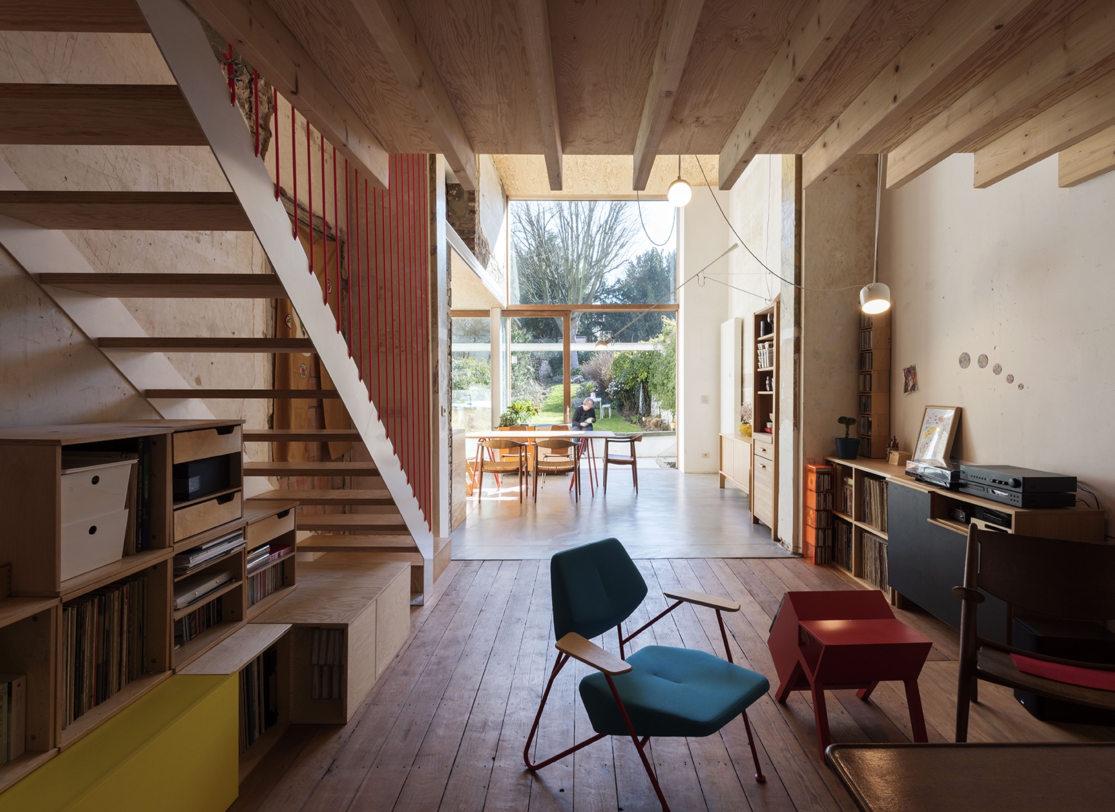 La grande hauteur sous plafond du rez-de-chaussée permet de proposer des vues diagonales, inédites et surprenantes.