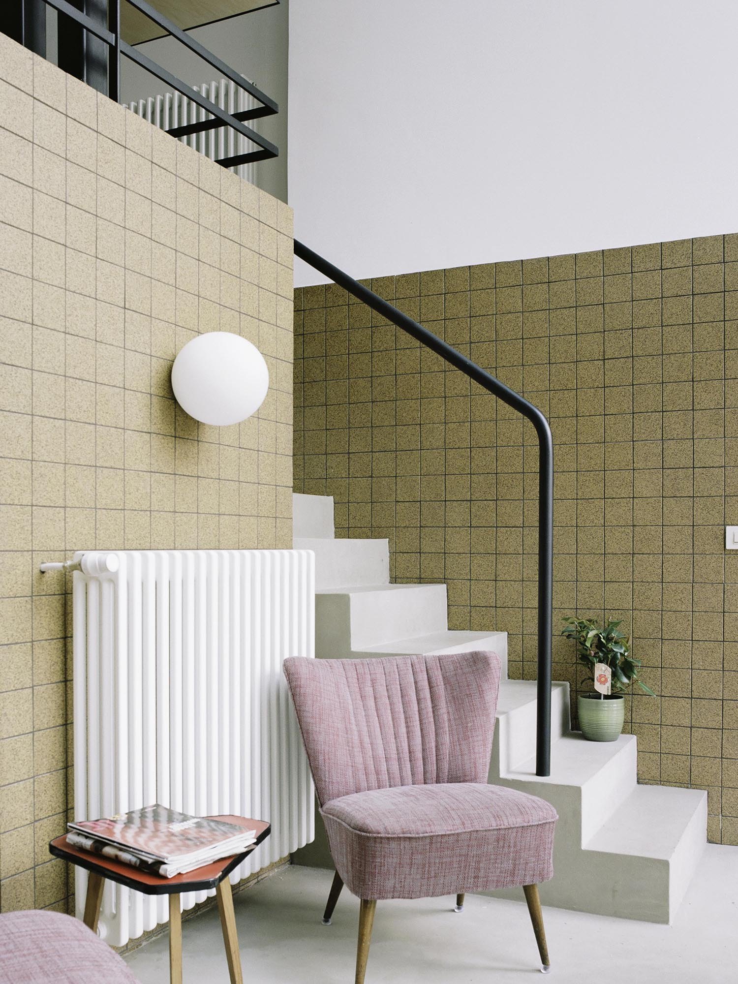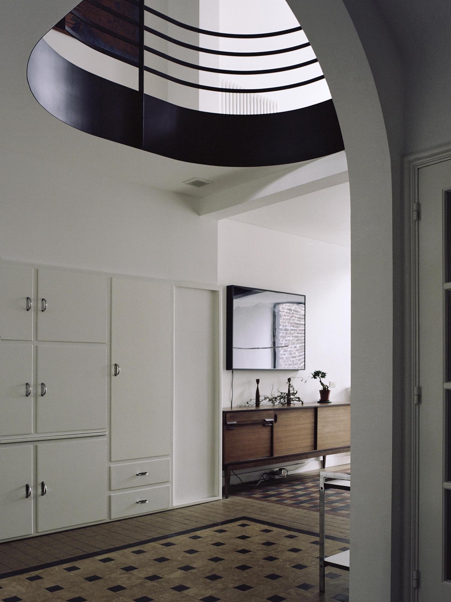 Tous ces lieux sont articulés par des vides et des baies aux formes arrondies qui dialoguent avec les baies en plein cintre existantes. Les couleurs et le calepinage des matériaux ont fait l'objet d'un travail minutieux. Les carrelages d'origine sont conservés et complétés par de nouveaux motifs permettant de mettre en valeur des parties existantes.