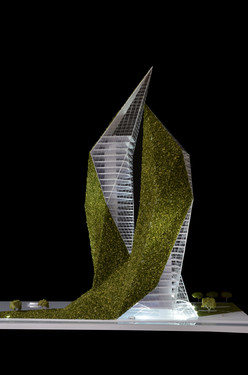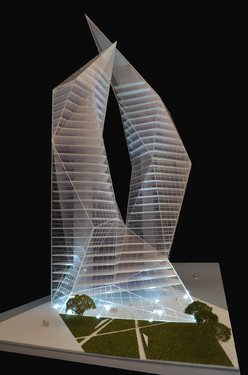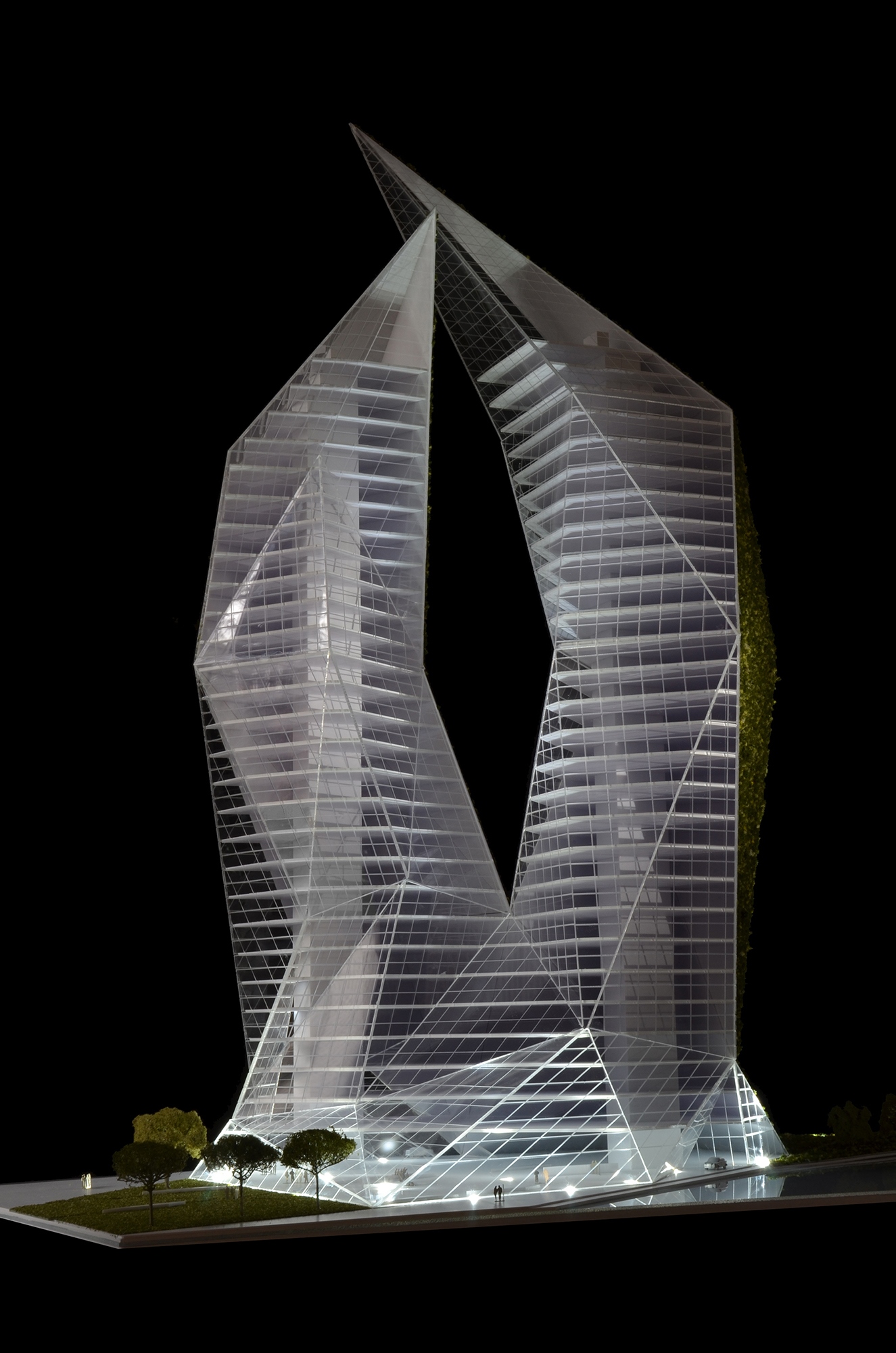 A l'image des projets du bureau, le Sky Peak incarne les lignes pures et anguleuses chères à l'architecte de Visé. Une réponse moderne au développement de Liège, et un signal dynamique de la part d'une région sur le plan international. Cette tour dépassant les 100 mètres au sommet de ses deux flèches tortueuses, accueille bureaux et commerce, tout en incluant la part sportive de la vie citadine.