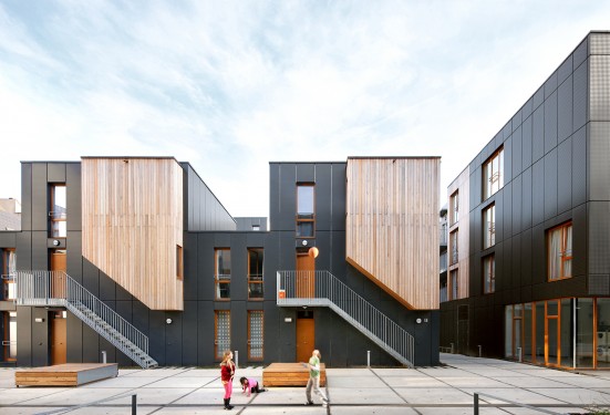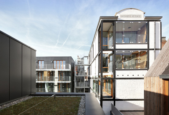 - La restructuration de la Savonnerie Heymans permet de créer un véritable «village» durable de 42 logements sociaux et une halte-garderie. Le projet est de la microchirurgie urbanistique qui améliore la situation pour tout l’intérieur d’ilot en le dé-densifiant et en le rendant plus vert. La variété des différents bâtiments – neufs, rénovés et réaménagés – reflète la variété des logements offerts: des studios, des appartements de une à six chambres, des lofts, des duplexes et de petites maisons.[...]
