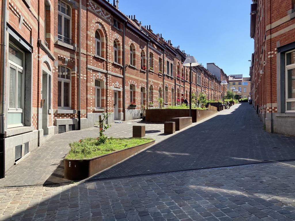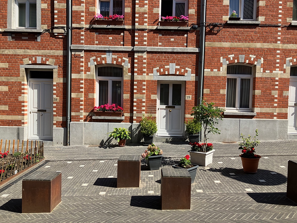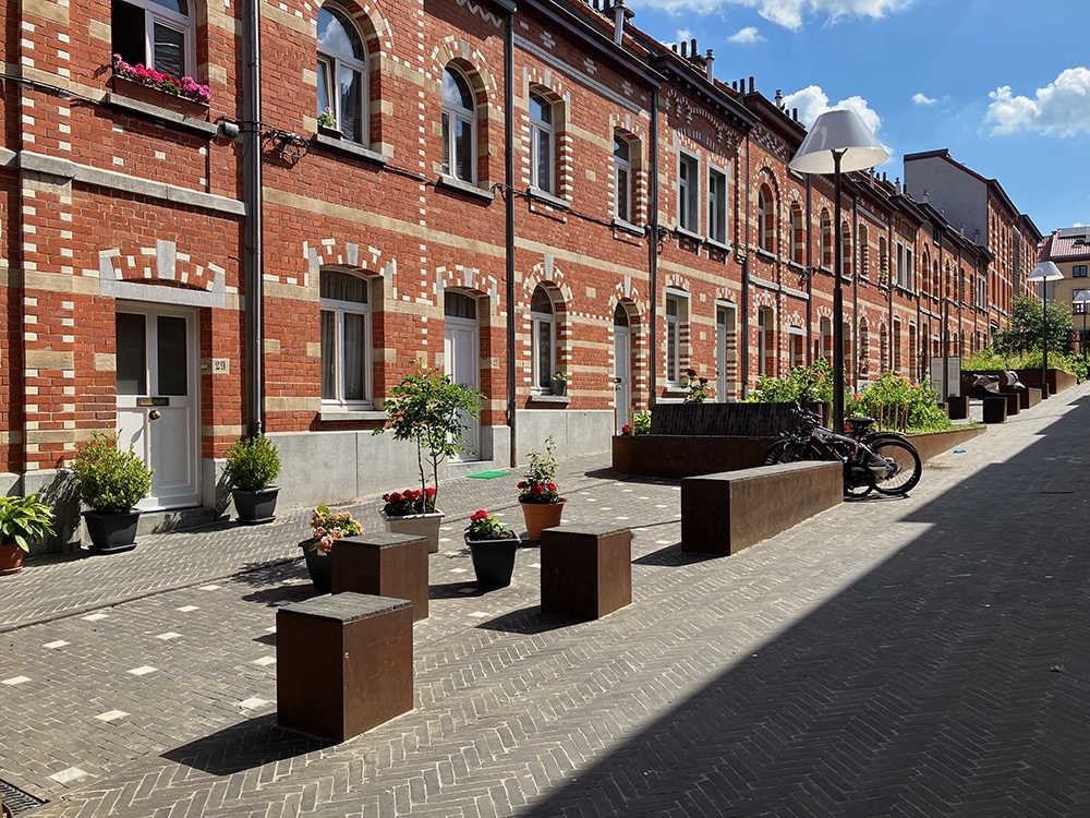 - La mission consistait en un reprofilage complet d’une rue en forte pente qui se situe dans le fond de la vallée du Maelbeek à Ixelles. Elle est bordée de l’une des premières cités sociales de Bruxelles, avec un ensemble bâti à haute valeur patrimoniale. L’A.M. MSA/Ney s’est chargée de l’ensemble des étapes du projet, du volet participatif, du réseau d’égoutage, des aménagements de surface, du mobilier urbain, des plantations et du système d’éclairage.[...]