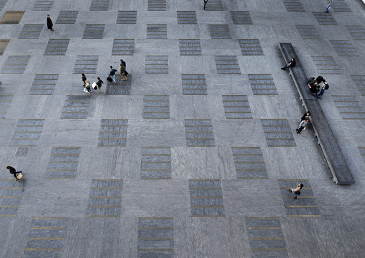 Le laiton inséré dans le sol autour du Théâtre manifeste la spatialité de celui-ci.
