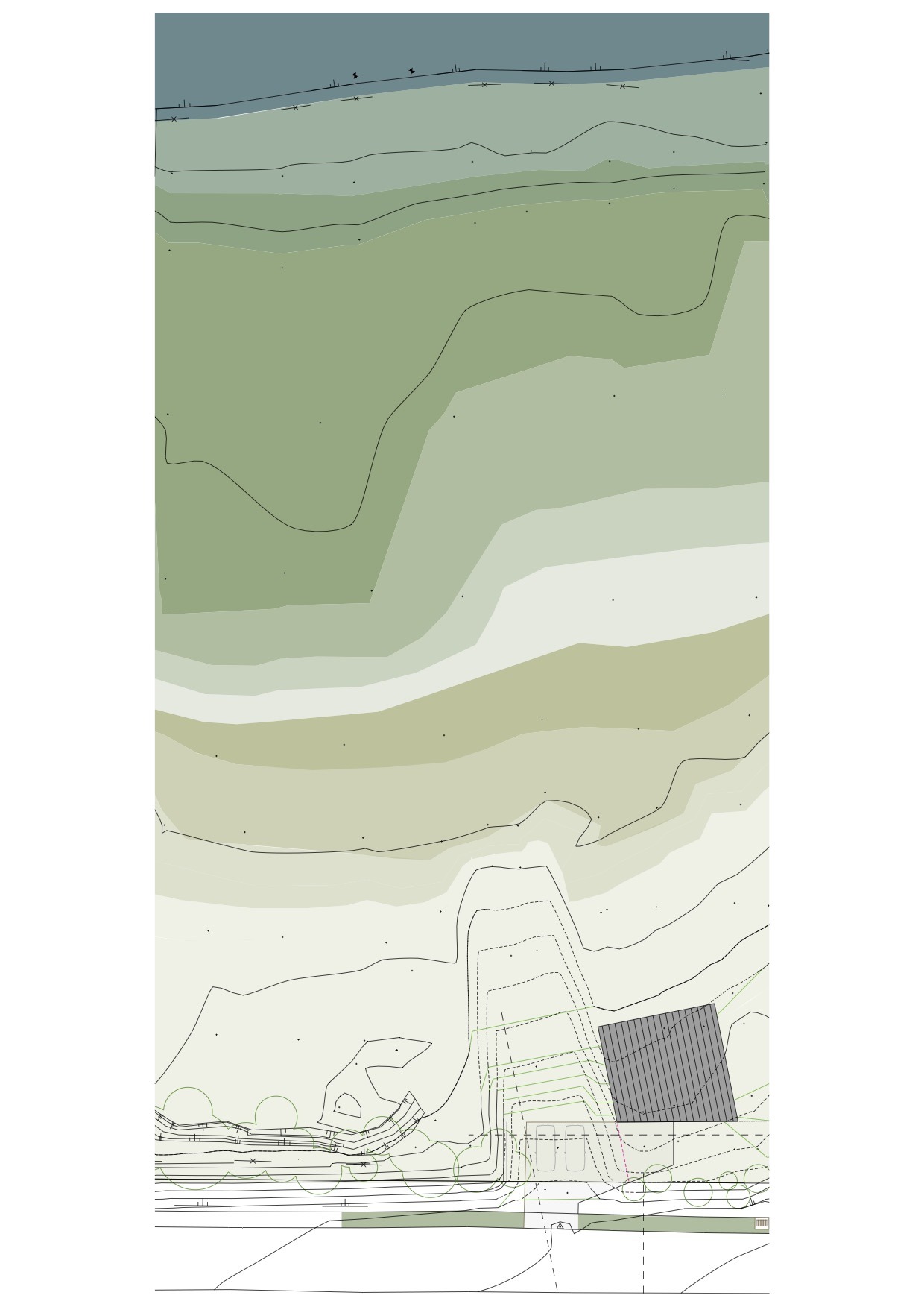 Le projet s'adapte au relief existant et minimise les déblais et remblais. L'implantation préserve les arrêtes du relief et évite les ruptures de crêtes