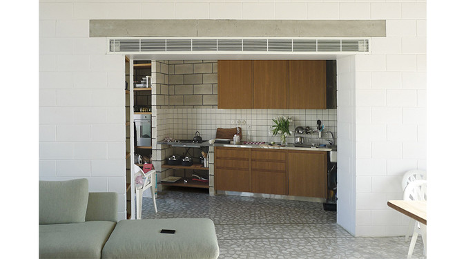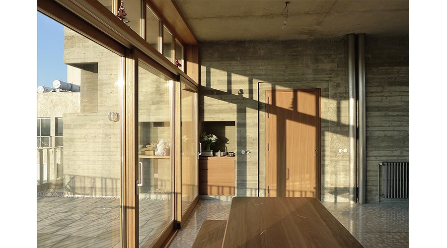 Privilégié mais en même temps appartenant à la ville, ce dernier niveau lui répond avec la même brutalité dont elle fait preuve. Les matériaux utilisés sont laissés bruts, dénués de tout artifice : le noyau de circulation en béton brut de décoffrage, les briques-béton pour les éléments non structurels, les tuyauteries et plafonds apparents. Les matériaux utilisés sont des plus courants dans la construction contemporaine du Liban mais on tente aussi de réinterpréter le « gout » local. Le sol par exemple, au lieu du marbre habituel