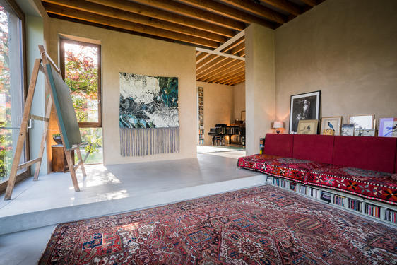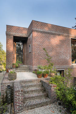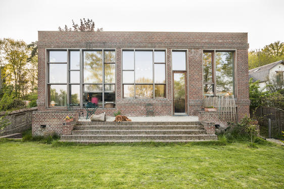 Ce sont les arbres environnants qui ont déterminés le design de cette maison familiale. L'architecte a littéralement grimpé aux arbres pour déterminer la future vue depuis le canapé. Ses lignes, briques et éléments naturels font croire que la maison est une ancienne manufacture, existant bien avant les maisons avoisinantes. Aujourd'hui, cette maison offre un équilibre entre vie, jeu et travail. L'univers très loft assure la connection entre les pièces tandis que les petits recoins offrent une protection paisible à qui s'y installe. Une maison construite pour grandir avec la famille.