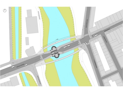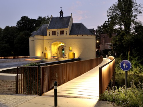 - Porte d'entrée historique de la ville de Bruges datant du 13-14ième siècle, la Smedenpoort est devenue trop étroite pour permettre une circulation fluide des voitures, piétons et cyclistes, particulièrement aux heures de pointe. C'est pourquoi la ville de Bruges, en accord à la Commission des Monuments et Sites, a décidé de réaliser deux passerelles piétonnes de part et d'autre du pont-levis existant.[...]