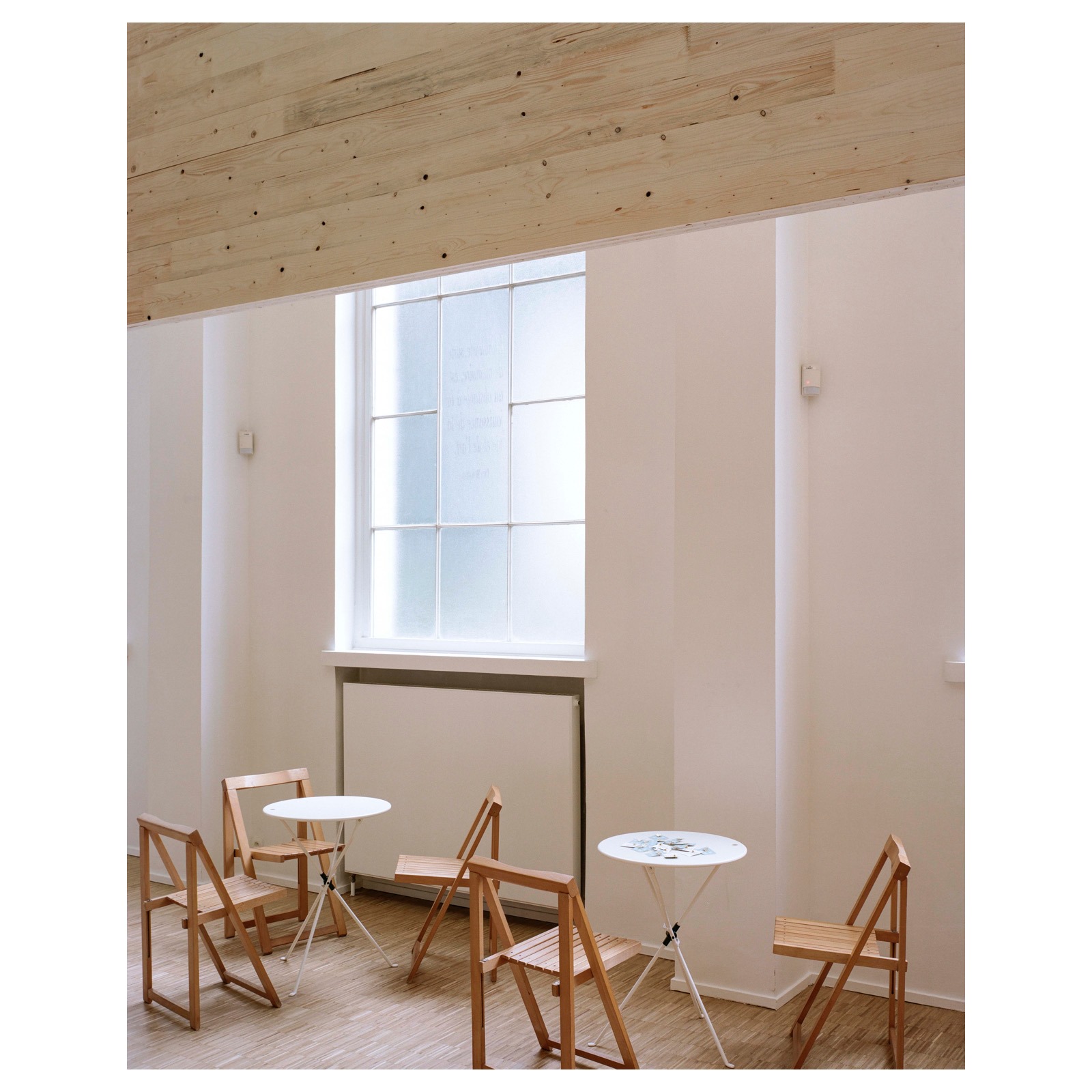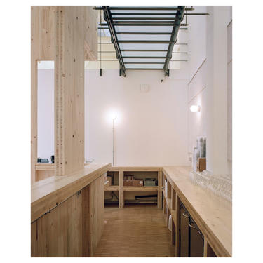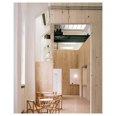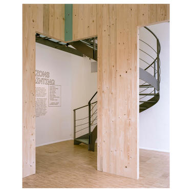 Un mobilier monumental unique, sorte de nouvelle pièce intérieure en double hauteur, vient articuler les fonctions d’un nouvel espace d’accueil (ticketing, bar, bookshop, vestiaires…) désormais central dans le bâtiment. Cette nouvelle spatialité est d’autant plus puissante que cette couronne en bois est troublante dans ses proportions : elle donne l’impression d’être un peu étriquée dans l’espace.