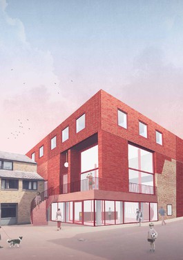 Le nouveau projet offre un visage et visibilité fortes vers la Place Rabelais, tout en conservant une logique de rénovation assumée. La dalle de la ville et ses entrailles accueillent dorénavant la salle de spectacle, qu'on peut voir depuis la rue.