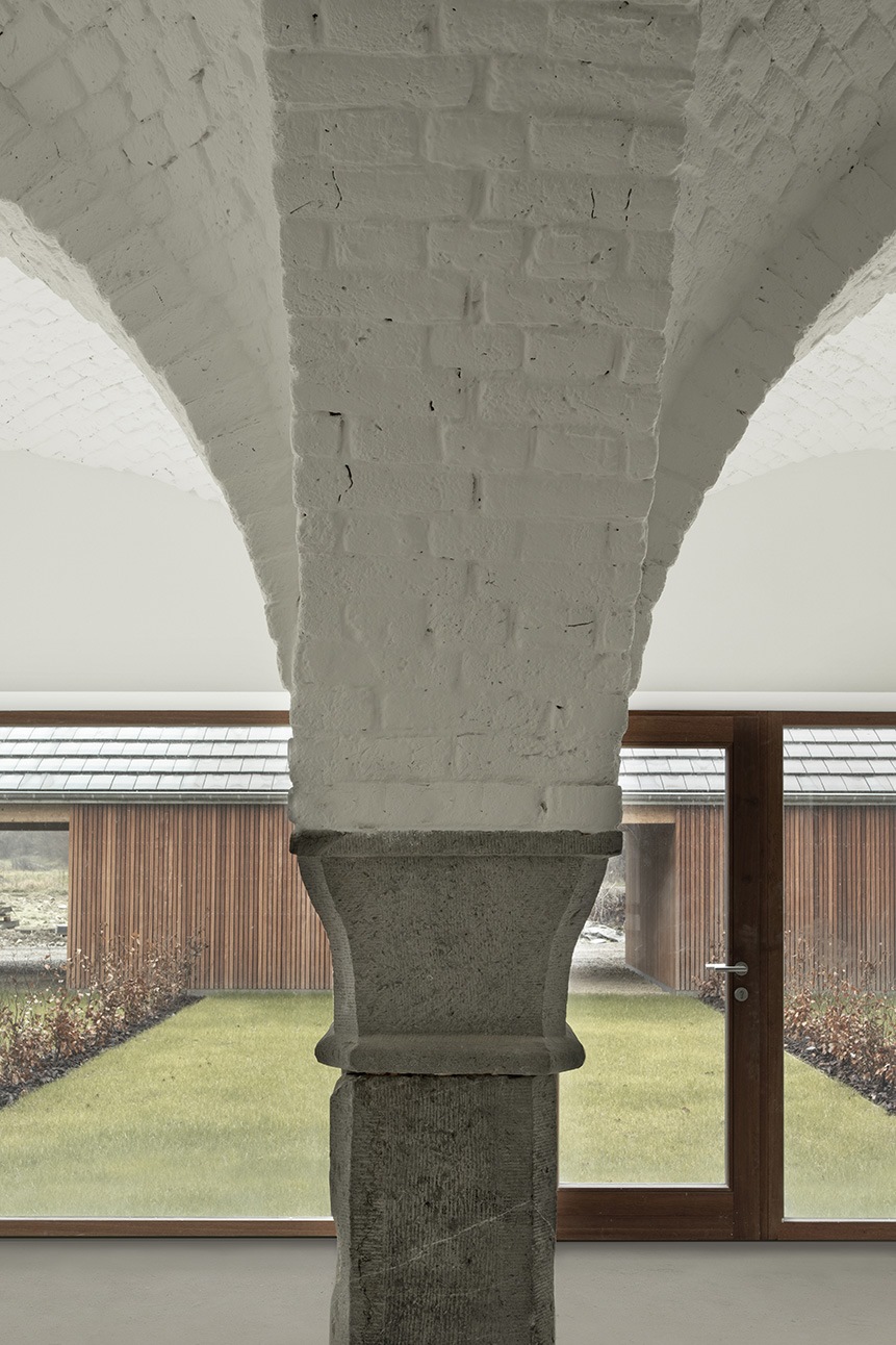 Délaissée depuis l'abandon de l'exploitation agricole, la ferme présentait des caractéristiques architecturales intéressantes, telles ses voûtes, ses colonnes et ses qualités spatiales.