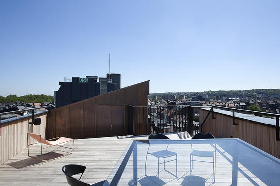 - Cet immeuble néoclassique situé en bord de Meuse à Liège avait subi des transformations lourdes ayant dénaturé l'intérieur de l'immeuble. Le projet propose de développer une qualité de vie actuelle tout en préservant les qualités architecturales du bâtiment. La qualité de vie des logements est également améliorée par la création d'espaces extérieurs de qualité.[...]