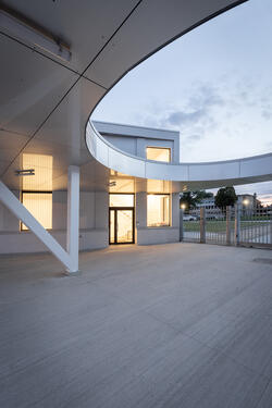 - En cœur de ville, une école, un grand parc, de grands arbres… les enjeux sont multiples pour guider la réflexion… pour les utilisateurs, tirer le meilleur de ce terrain en maximisant les vues et les apports en lumière naturelle ; pour les élèves, veiller à maintenir les qualités de ce poumon vert en réduisant l’impact du bâtiment ; pour l’établissement, proposer un projet durable dans le sens entier du termes, adapté pour aujourd’hui et demain… ”[...]