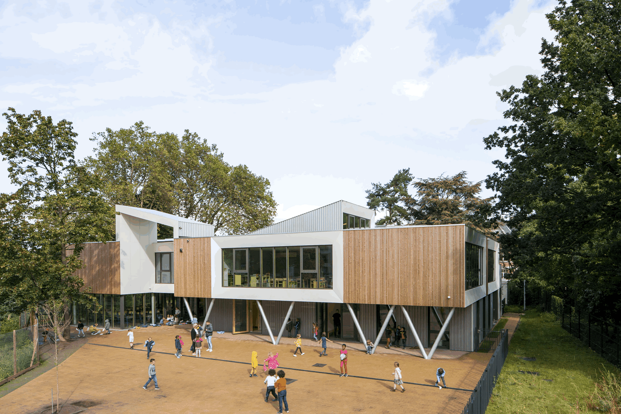 - SUR UNE PARCELLE EN TRIANGLE, L'ORGANISATION SPATIALE ENTRE LES DIFFÉRENTES ENTITÉS ( ÉCOLE, LOCAUX SCOUTS ET POTAGERS "JARDINS D'ERNEST" ) PERMETTENT UNE COHABITATION IDÉALE QUI FAVORISENT DES OPPORTUNITÉS D'ÉCHANGES SOCIAUX POUR CONSTRUIRE ET FAIRE VIVRE UNE COMMUNAUTÉ DANS LE QUARTIER.[...]