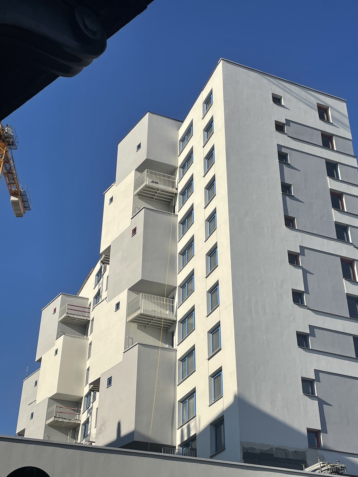 Ces boites permettent d’ajouter à chaque appartement une pièce en plus ou un espace extérieur. La difficulté structurelle d’ajout de poids se résout par l’enlèvement de l’acier parachèvement et son remplacement par un revêtement plus léger.