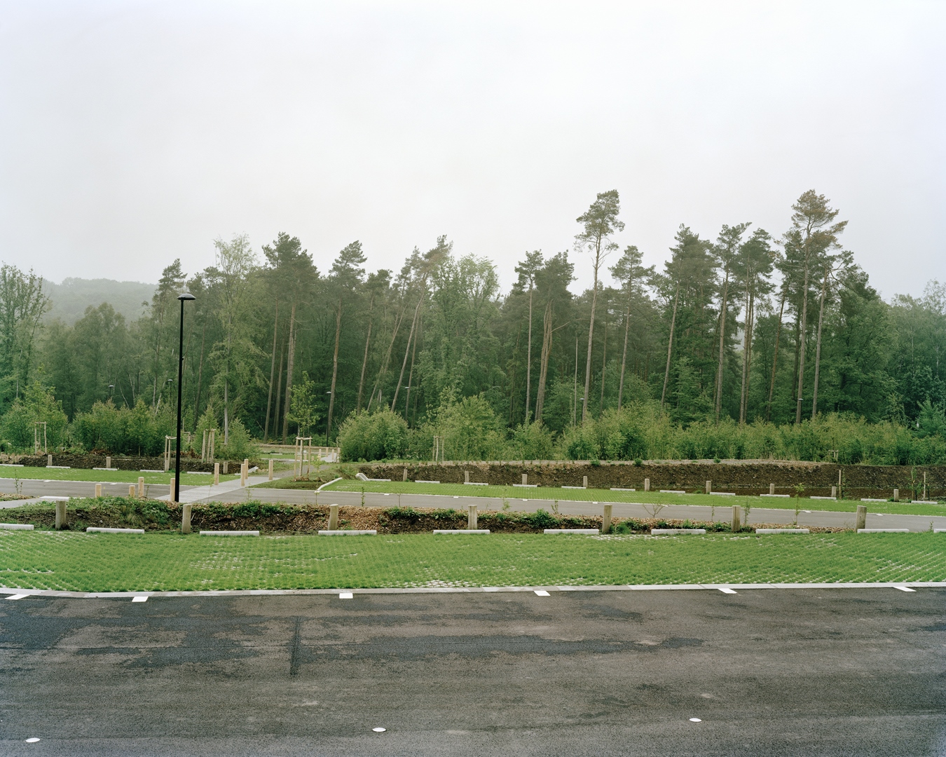 C’est un parking dans la forêt où la nature reprend ses droits et où la promenade doit rester un plaisir. La composition en « peigne » permet d’envisager ce glissement entre milieu naturel et milieu artificiel.