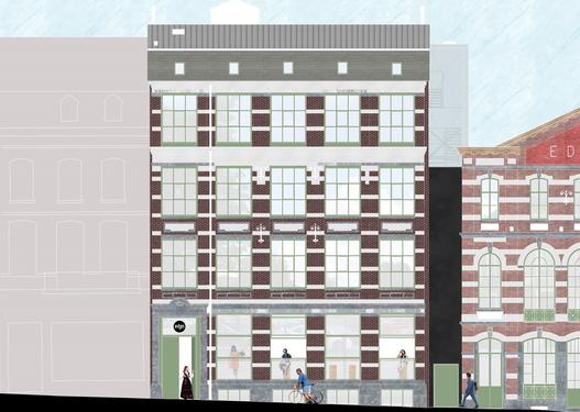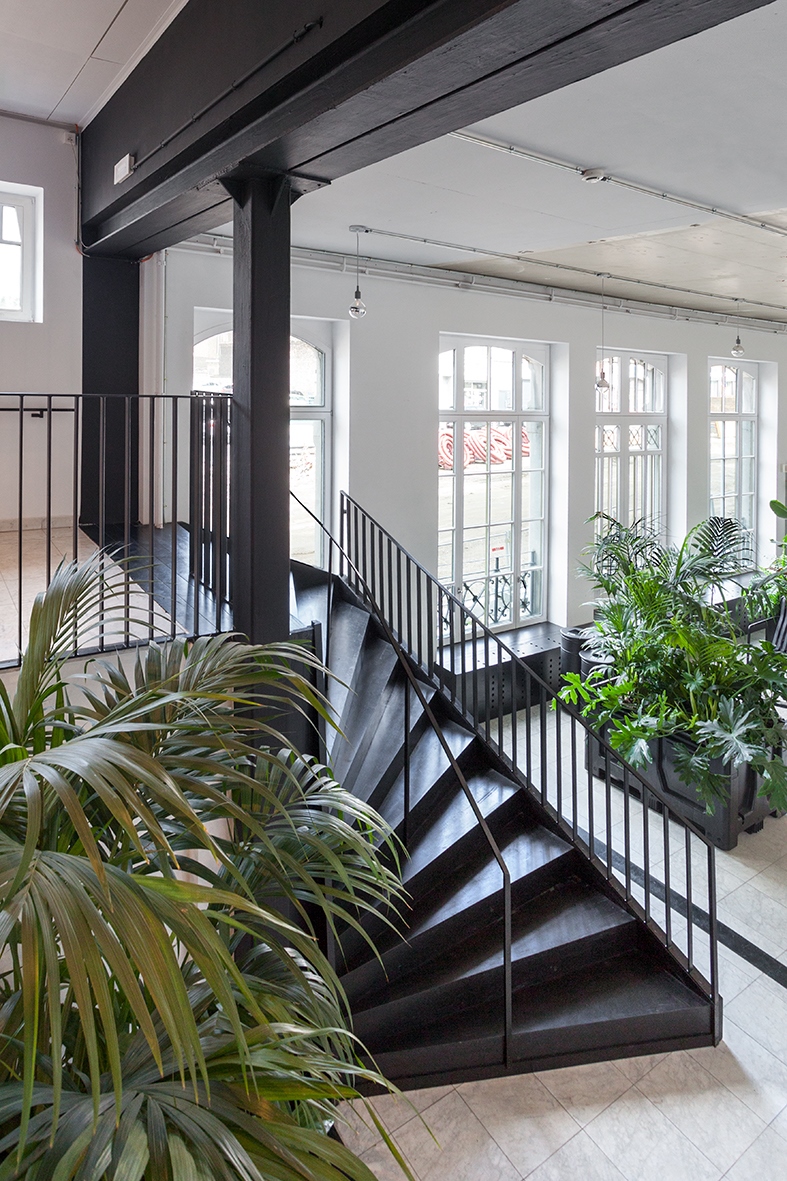 Le bâtiment « Cinq » sera dédié à la petite restauration au RDC, à des espaces d’ateliers polyvalents, de stockage, de répétition et une résidence d’artistes au dernier étage. Un ensemble de démolitions et de modifications sont apportées à l’intérieur, au RDC essentiellement, afin de fluidifier la circulation entre les bâtiments et créer une unité. Dès l’entrée actuelle située au n°1 du Boulevard, la démolition et transformation de l’escalier et de larges ouvertures permettent un contact visuel direct vers le n°3 et le Cinq. Les modifications des escaliers existants sont assumées de par leur matérialité.