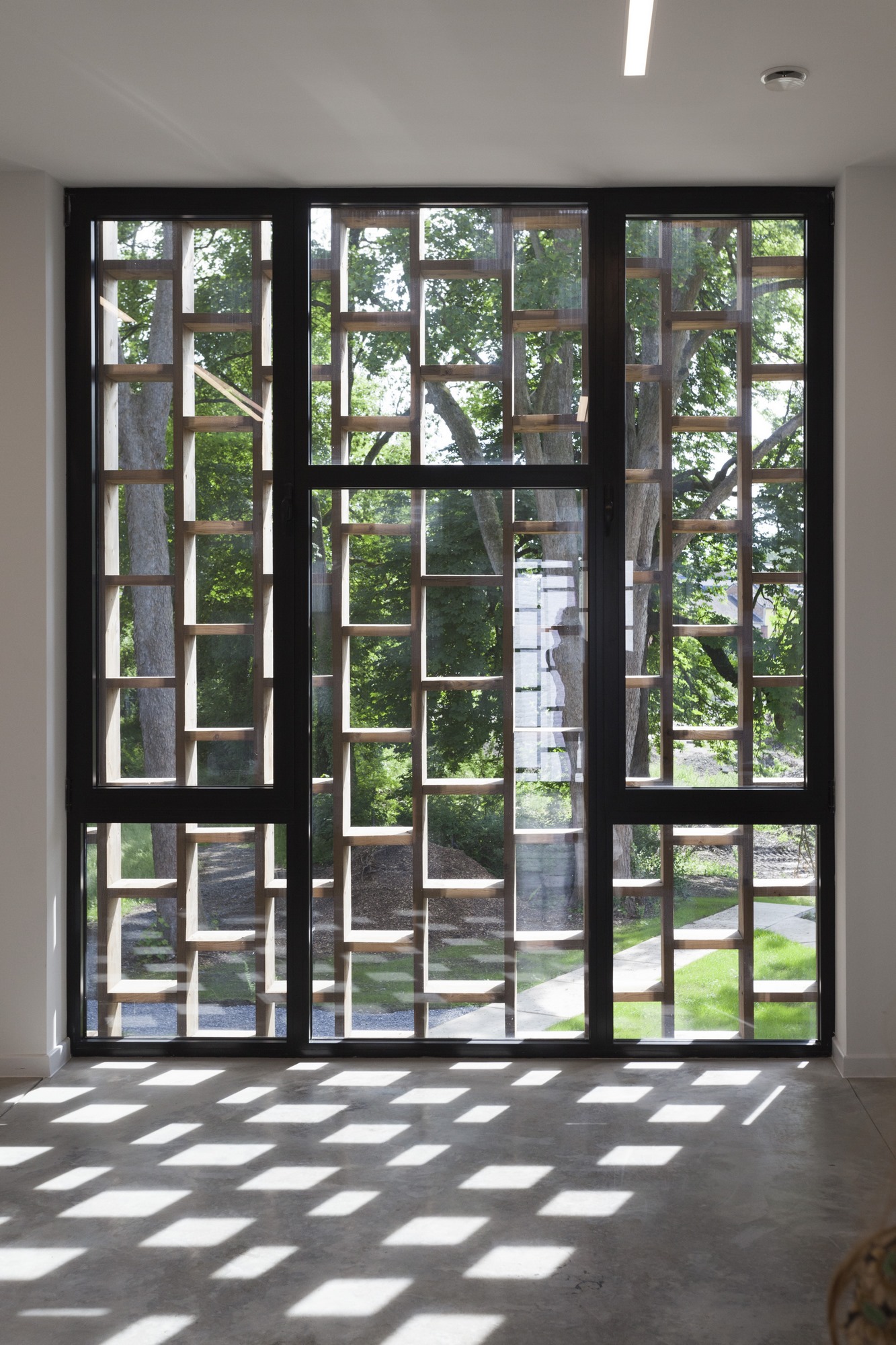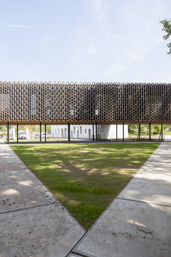 - La fonction première d’un château est la défense par rapport à la menace extérieure. Celle d’un équipement public est de s’ouvrir au citoyen. La transformation d’un château en équipement communautaire consiste donc à ouvrir son enceinte et lier son espace à l’espace public. D’un point de vue symbolique, il s’agit de rendre à la communauté ce qui appartenait auparavant à un seul. Par un geste simple, le projet transforme l’espace ceinturé par de hauts murs en un espace de rencontre. L’insertion d’un mode de distribution transversale au site modifie totalement la logique de fonctionnement: l’entrée s’oriente à présent sur la ville, et la découverte du site s’axe directement sur le parc.[...]