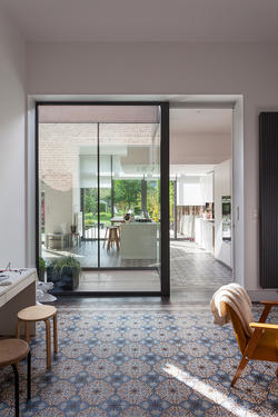 - Rénovation du rez-de-chaussée d'une habitation et construction d'un nouveau volume dans une dent creuse accueillant un bureau et deux appartements.