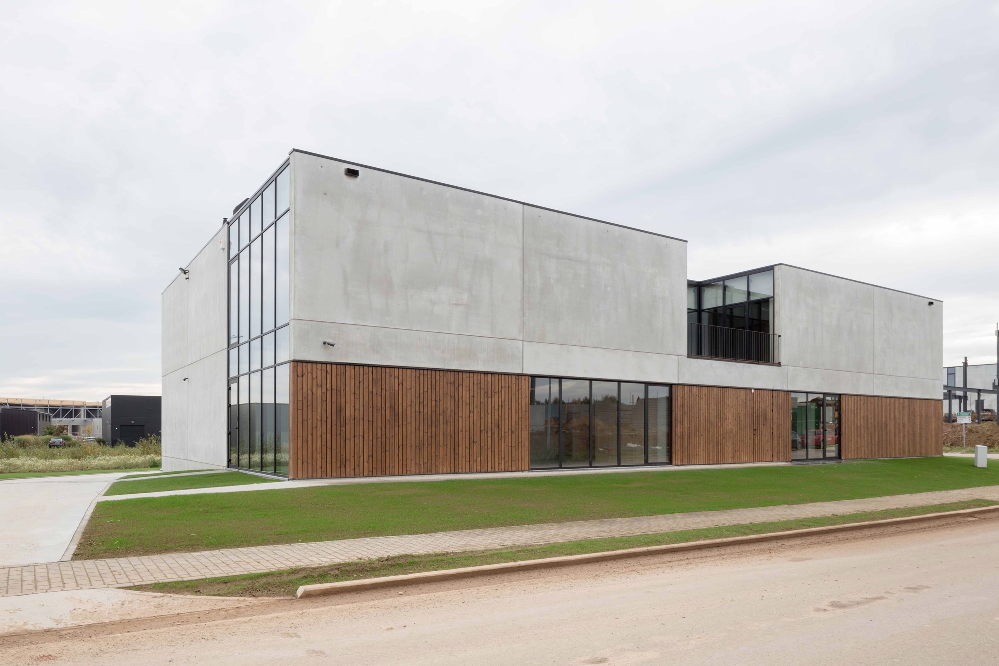 Les architectes ont joué avec la trame et les dimensions traditionnelles de la construction industrielle en béton afin d’offrir à leur client un bâtiment abordable et rapidement exécuté (5 mois de chantier), tout en préservant de belles qualités architecturales.