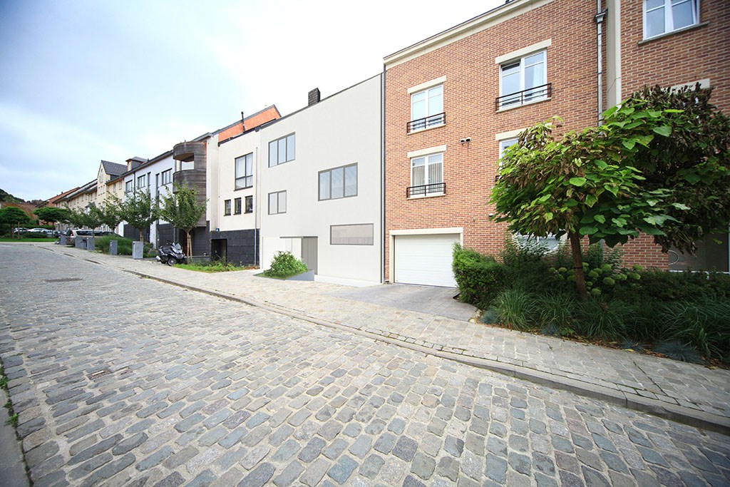 - Dans un quartier résidentiel à Bruxelles, les clients souhaitent habiter une maison en bois avec de hauts plafonds et un grand atelier indépendant, en privilégiant le contact avec la végétation foisonnante de l'intérieur de l'îlot.