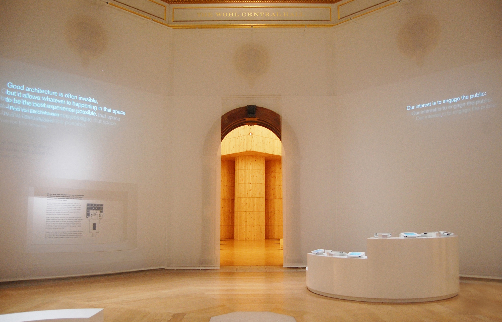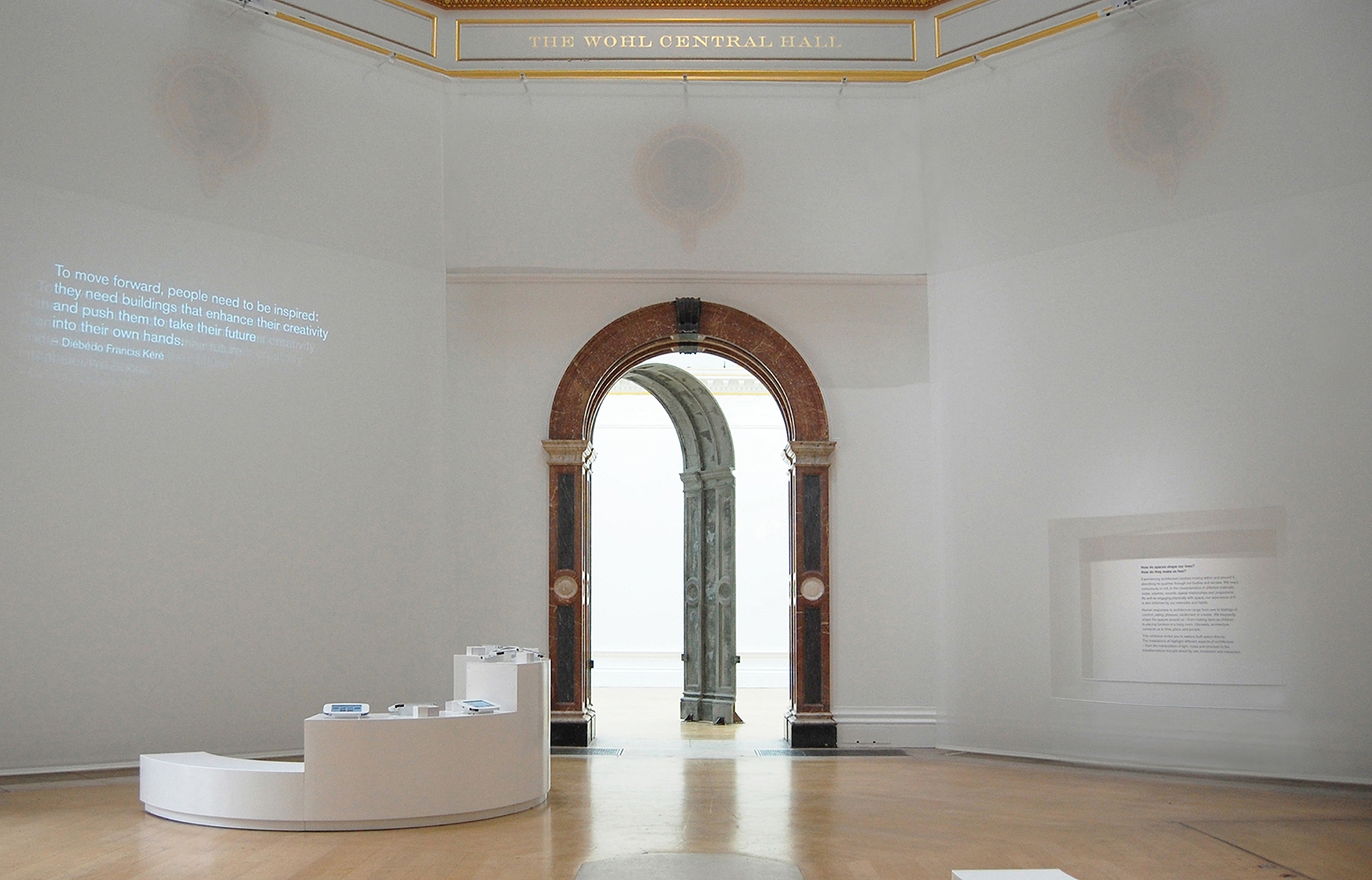 "Nous leurs avons donné un défi, pour vous offrir une nouvelle perspective sur l'architecture. A l’aide de structure, texture, parfum, éclairage et couleur, ces architectes vont transformer les galeries principales et poser des questions fondamentales sur la nature de l'architecture ". Curatrice Kate Goodwin.