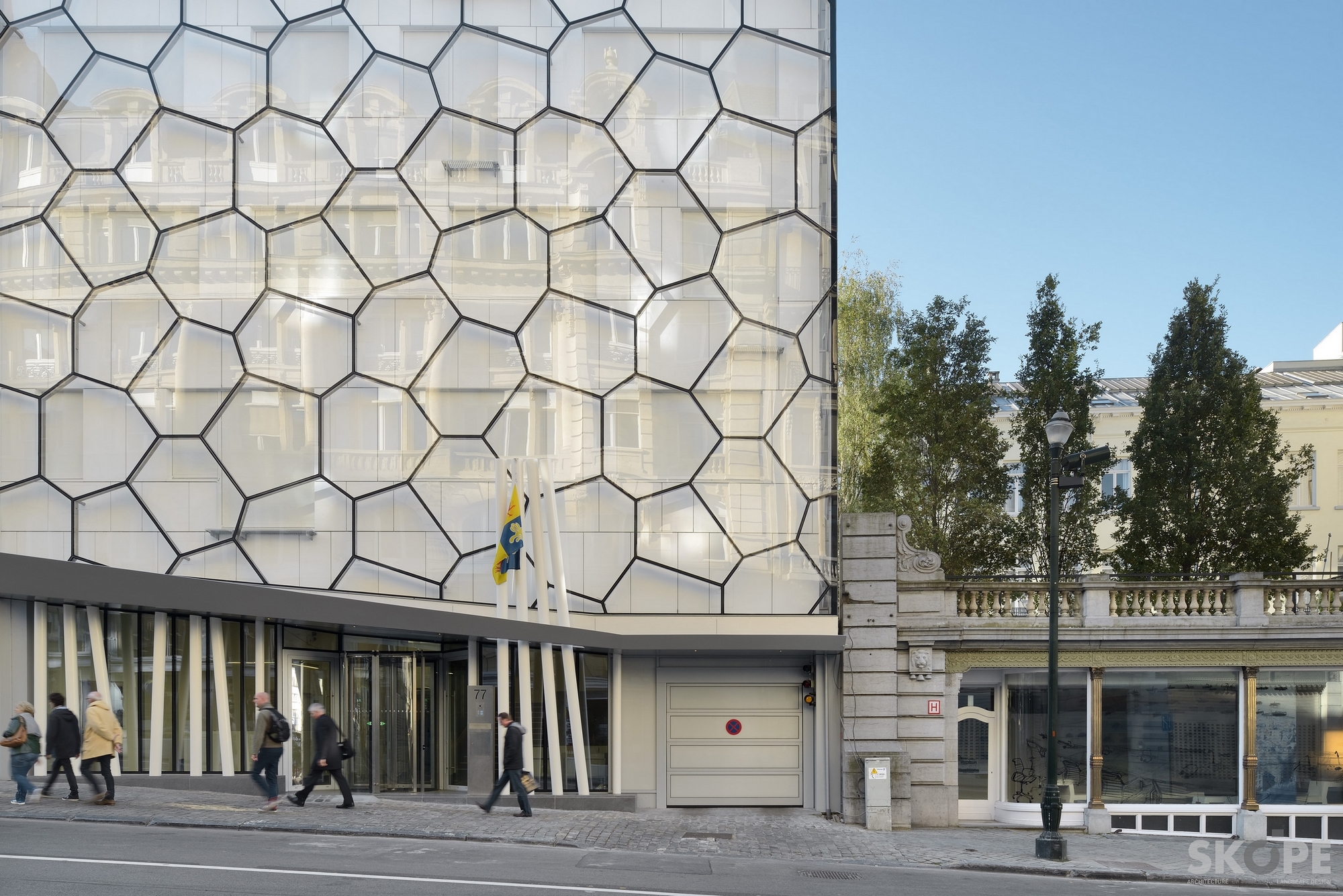 Le nouveau programme prévoyait le siège du Parlement Francophone Bruxellois (PFB), ainsi que la restauration de l'ancien Relais Postal (Renaissance 1694) en espace polyvalent. Le risque aurait été grand de chercher la facilité par la création d'un immeuble mimétique de l'aile droite du Parlement ou bien de proposer une solution dissonante avec un projet de facture uniquement contemporaine. La démarche des architectes fut autre, s'inspirant de l'histoire du lieu tout en assumant la contemporanéité des enjeux.
