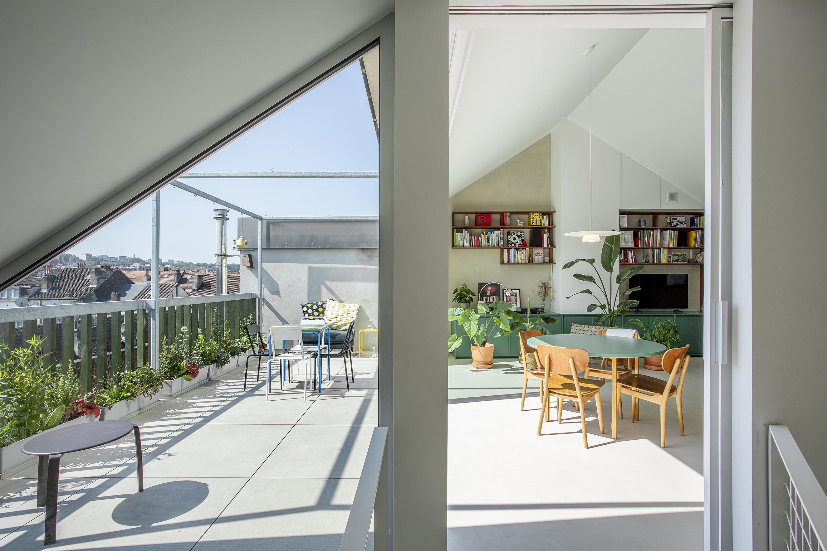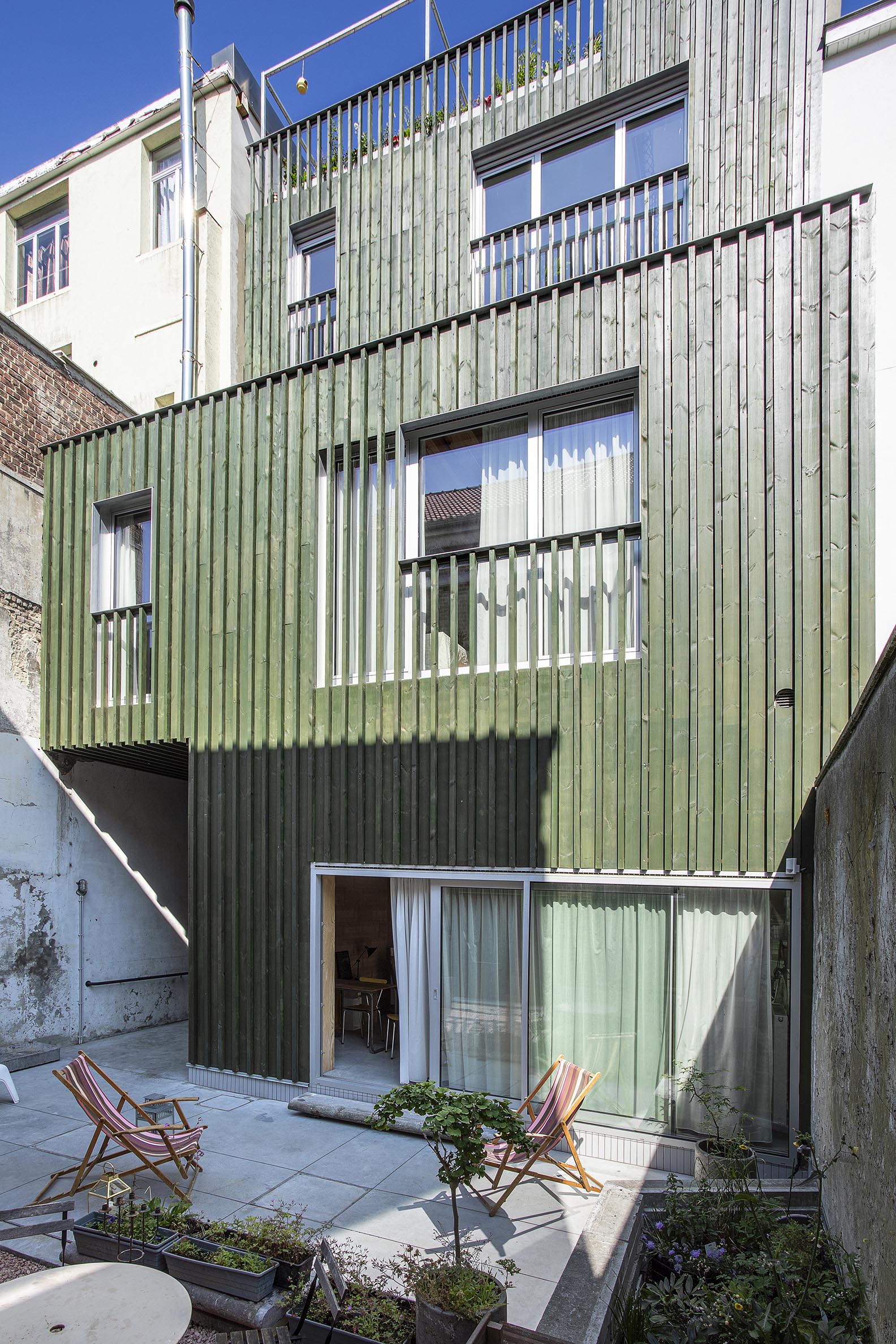 - L’objectif est de créer des logements adaptés et qualitatifs en centre ville. En effet, les logements sont à la fois suffisamment généreux pour être habité par des familles en offrant un confort de vie un peu supérieur aux appartements classiques grâce à la possibilité d’utiliser les espaces communs du rez-de-chaussée. Les deux simplex n’ont pas de terrasse mais de grands ouvrants permettant à la lumière d’entrer. Le duplex, plus éloigné de la cour extérieure et plus grand, dispose d’une terrasse en toiture.[...]
