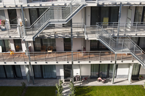 La qualité de l’intérieur d’îlot qui était construit est optimisé : il redevient un jardin, mi privé, mi-collectif. Toutes les entrées des logements sont tournées vers la cour intérieure. Des coursives extérieures relient les appartements, évitant de construire de coûteux couloirs sombres. Ces passerelles sont larges ce qui permet une appropriation par les habitants en balcons semi-privatifs. Ces espaces sont conçus pour induire des liens entre les habitants, sans compromettre l’intimité de chaque logement.