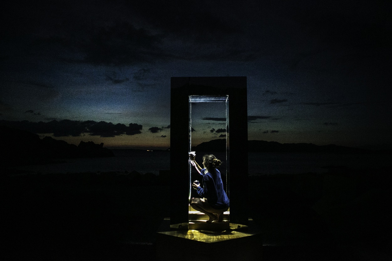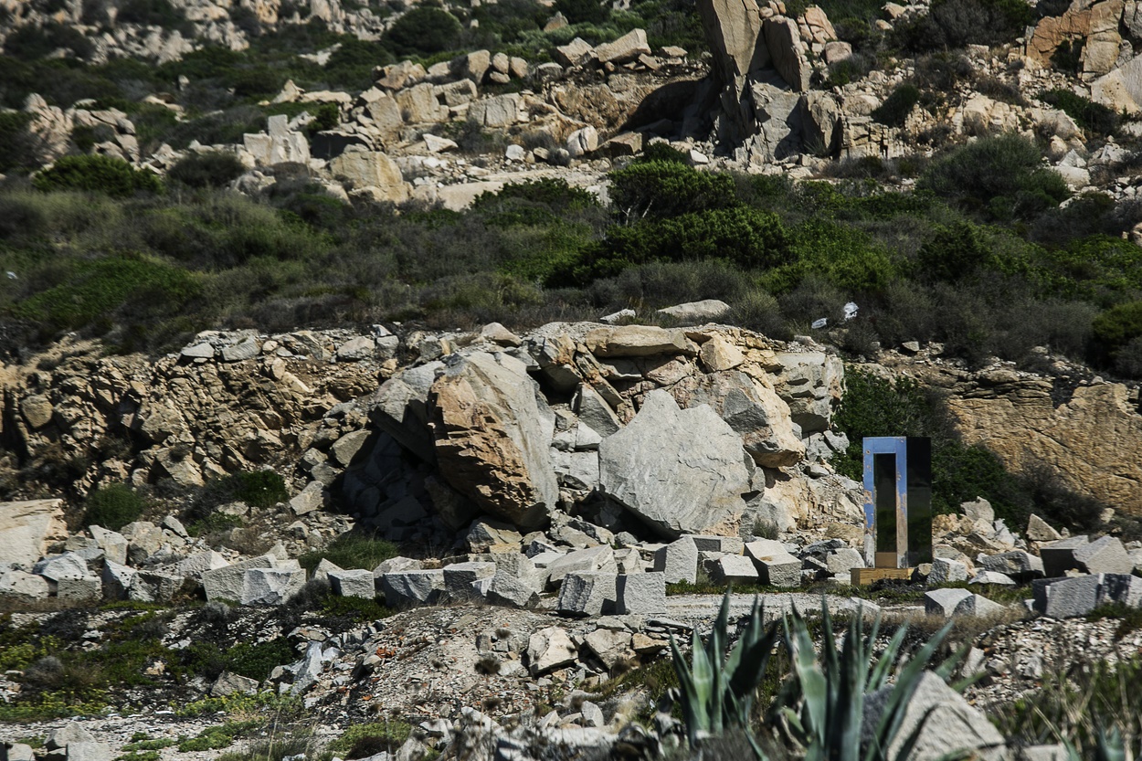 - Une porte, une entrée. Un passage vers un lieu que je distingue par l'ouverture. Différent ou peut être identique. L'horizon. Trois marches. Un seuil. Entre ici et là-bas, derrière et au-delà, proche et lointain. Sur une ile, comme dans un monde fini, je suis dépourvu·e de seuils. Je suis naufragé·e. Mais les seuils peuvent aussi être idéologiques. Le totem appelle les passant·e·s : une entrée sans enceinte, une ouverture vers la même chose qu'avant. Le totem est une invitation à penser la connexion sous d'autres formes que les connexions matérielles.[...]