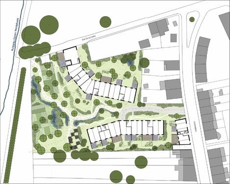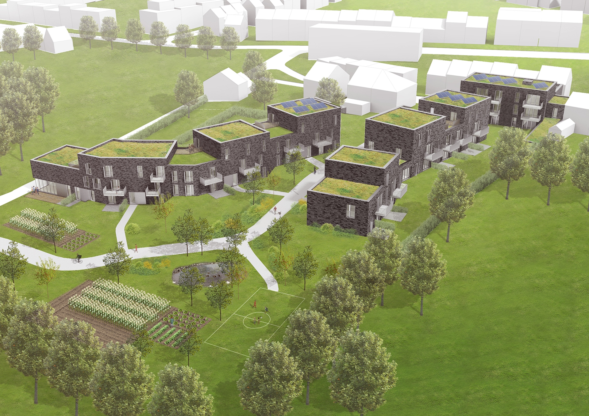 Au-delà de la volonté d’offrir du logement moyen (locatif), le projet prévoit 30% de logements dédiés aux séniors (PMR), l’intégration d’une grande salle polyvalente (communautaire), d’un parking semi-enterré de 35 pl et des aménagements paysagers de qualité (potagers, espace jeux, pergolas, noue de dispersion des eaux pluviales, etc.).