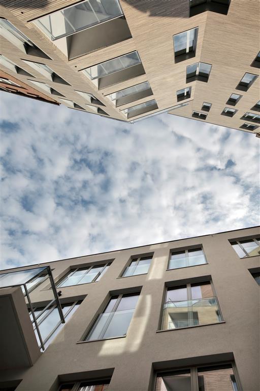 Le batiment en intérieur d’ilot est constitué de larges baies qui viennent structurer la façade avec discretion et sont étudiés afin de minimiser les vues sur les habitations des voisins.