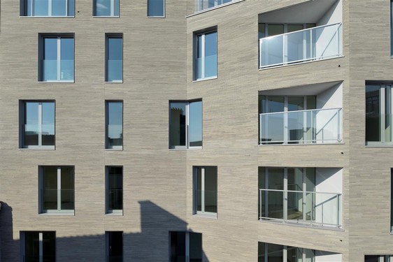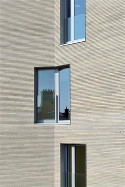 Le projet est situé à un endroit auquel l’alignement change. La proposition architecturale entend emphaser cette particularité : la façade à rue est structurée par 3 plans qui forment une ligne brisée et en accentuent son rythme vertical. Cette lecture sera d’autant plus marquée que le revêtement de façade y est subtilement différencié et captera donc autrement la lumière.