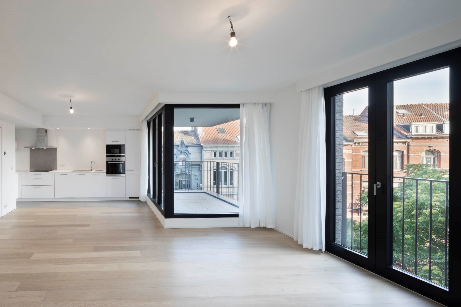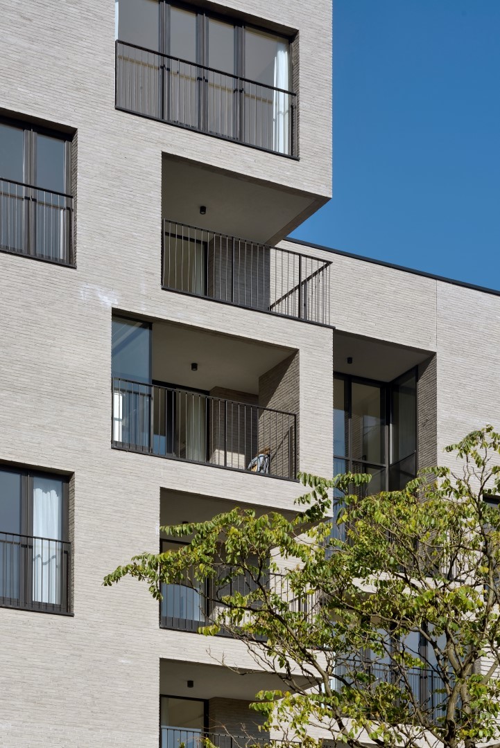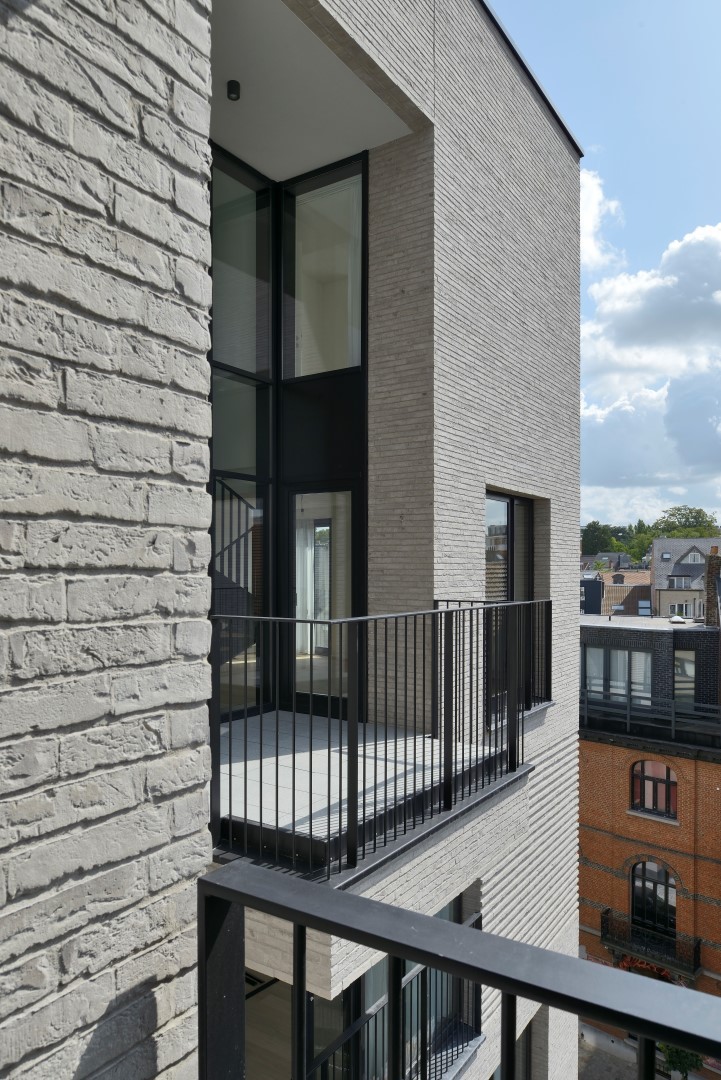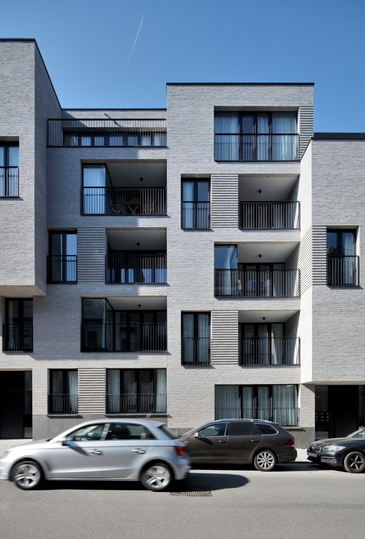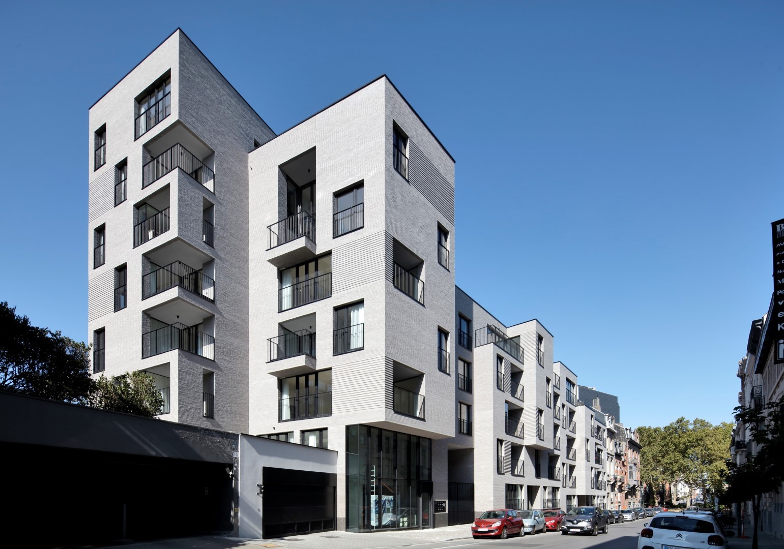 - Cet immeuble de 35 appartements et un commerce a pour objectif d’implantation de retrouver le rythme des maisons, caractéristique de l’architecture bruxelloises, de la rue tout en assurant une liaison d’échelle avec les plus hauts bâtiments voisins datant des années 60 et 70.[...]