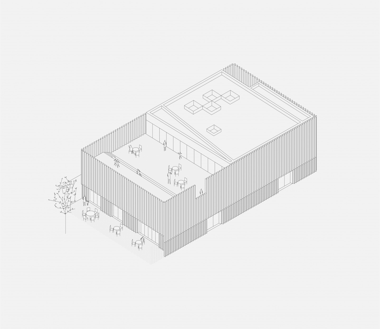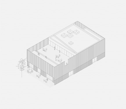 - La rénovation de ce centre culturel construit dans les années 1960 propose de réorganiser le bâtiment en retournant la salle de spectacle et en l’allongeant légèrement vers l’avant et vers l’arrière. Dans le but d’atteindre le degré de performance énergétique voulu, l’ensemble est enveloppé de tôle ondulée perforée.[...]