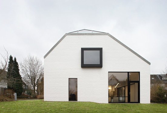 - Transformation et extension d’une habitation trois façades de type ouvrière dans un lotissement des années 1930. L’habitation unifamiliale comprend 4 chambres, 1 bureau ouvert, 3 salles de bain, 2 espaces de vie (dans partie existante et nouvelle extension). L’extension est pensée comme un volume dans un volume plutôt qu’une succession de pièces. La transformation multiplie la surface de 1,5 par rapport à la situation existante.[...]