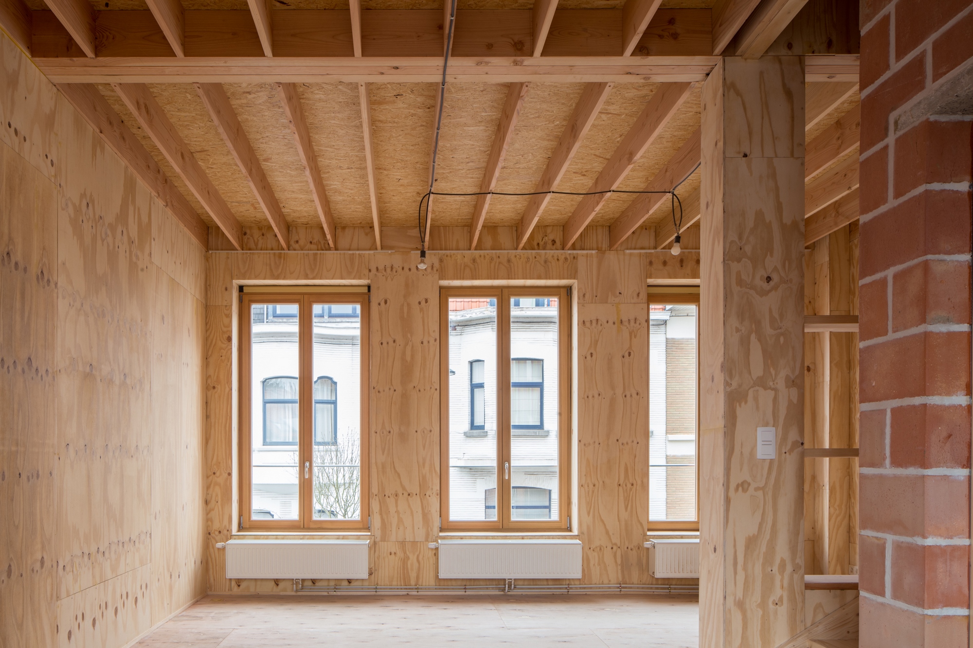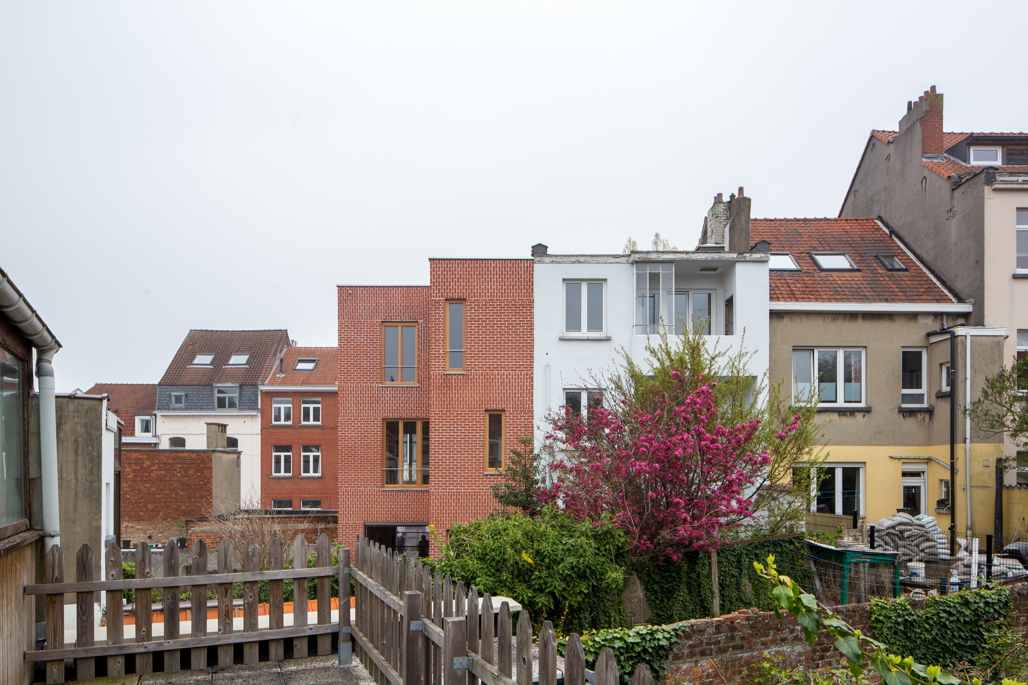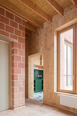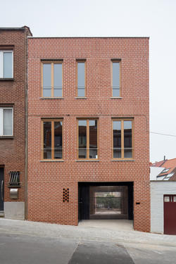- La demande a consisté en la construction d'une nouvelle habitation en milieu urbain. Le profil du maître d'ouvrage était particulier – un couple de retraités souhaitant revenir vivre sur Bruxelles. La mise à disposition d'un budget très limité, accompagné d'un souhait d'une architecture avec un faible impact énergétique global ont porté l'ensemble des considérations architecturales vers une construction centrée sur les économies de moyens de mise en œuvre. Le postulat était de dire que cette économie de moyens puisse répondre à une volonté de bâtiment écologique et durable.[...]