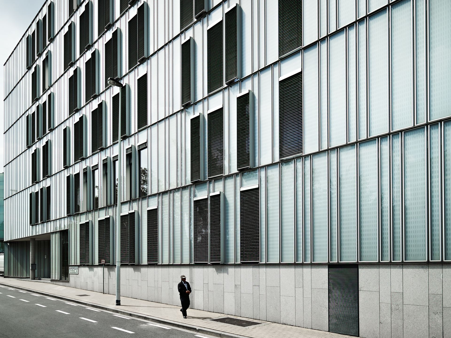 - AEROPOLIS est un OVNI urbain. Sa forme compacte atterrit pourtant solidement sur l’alignement de rue comme pour montrer qu’elle y a sa place, fait un recul discret vers l’ouest libérant une placette ensoleillée sur le boulevard chargé, et aligne humblement ses niveaux de corniches avec son massif voisin KINETIX. Le volume résultant s’enroule autour d’un patio fédérateur assurant ainsi une lumière du jour équitablement répartie. Le bâtiment est donc un OVNI respectueux.[...]