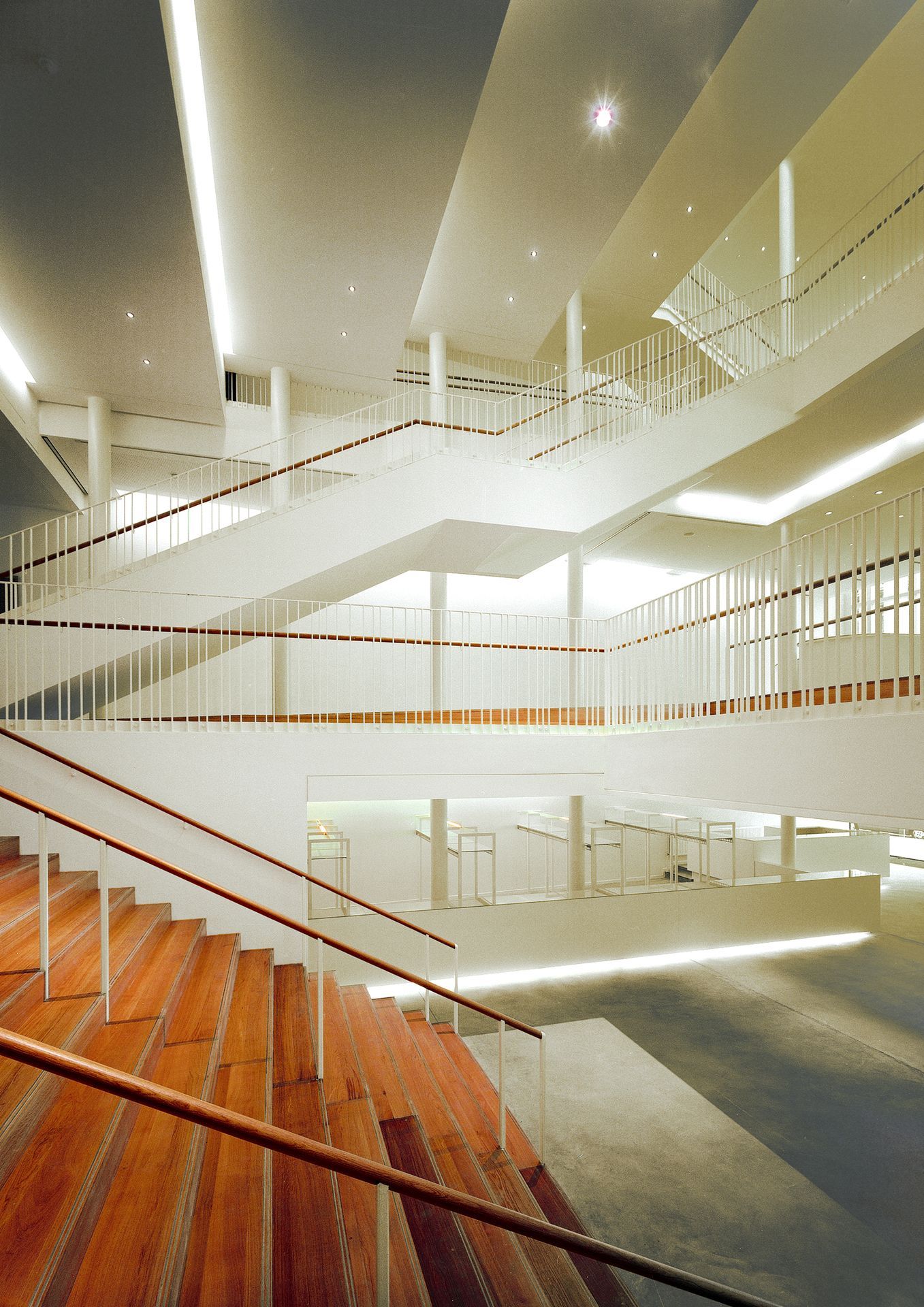 Toutes fonctions et activités fusionnent grâce à de généreuses volées d'escaliers serpentant à travers l’espace... le foyer qui en découle captant ainsi l’énergie du lieu avec une aisance