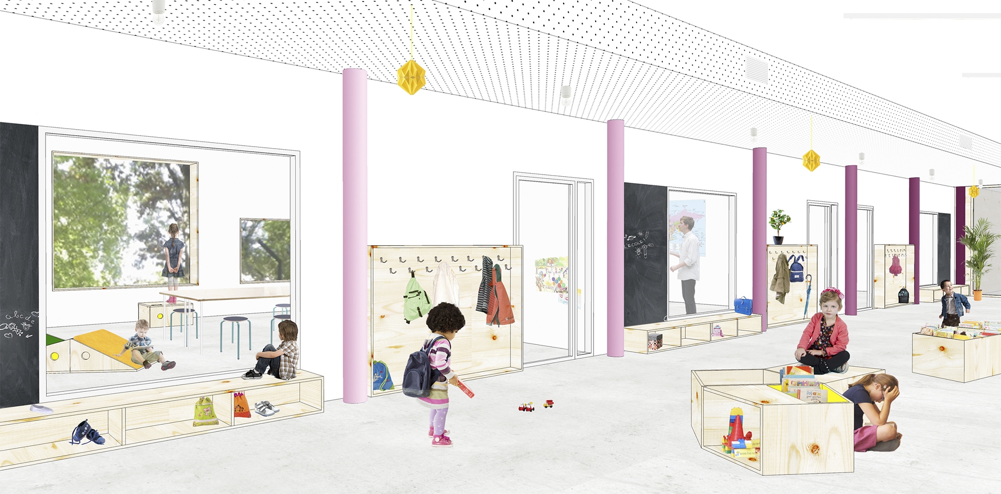 - Conception du design mobilier des nouvelles écoles 7 et 8 à Ixelles.