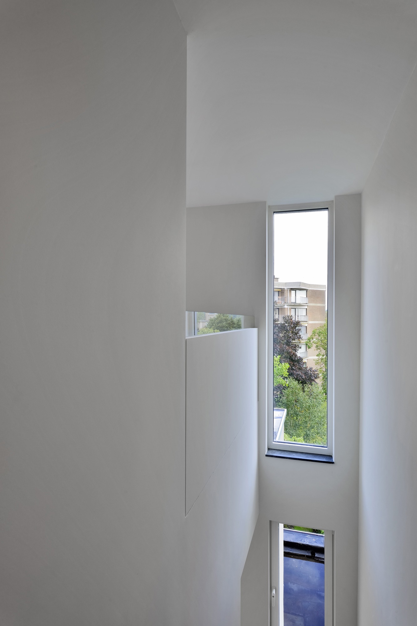 Situés dans des plans différents, ils se décalent de façon à laisser passer la lumière entre eux vers la partie centrale des logements. Différentes vues sur l’extérieur sont ainsi rendues possibles.