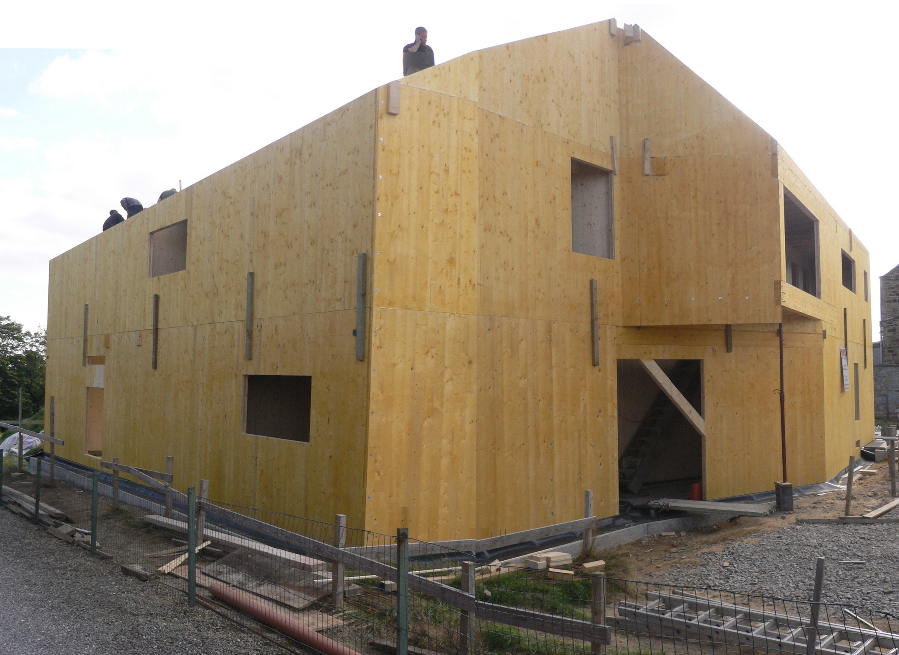 - Construction passive pour un logement unifamilial, ossature en bois massif avec installation domotique pour la gestion de l'énergie.