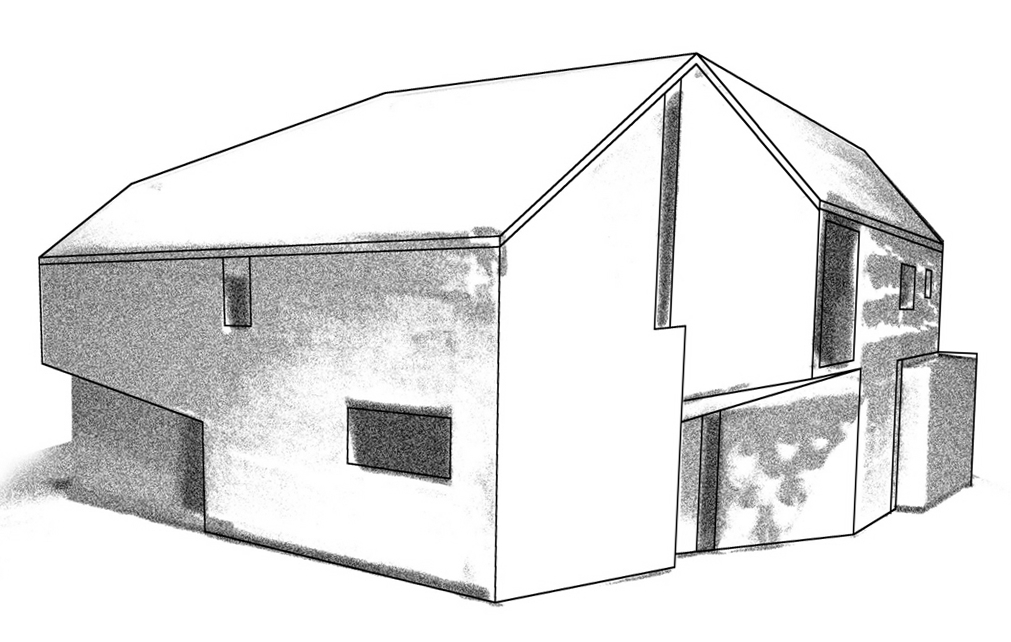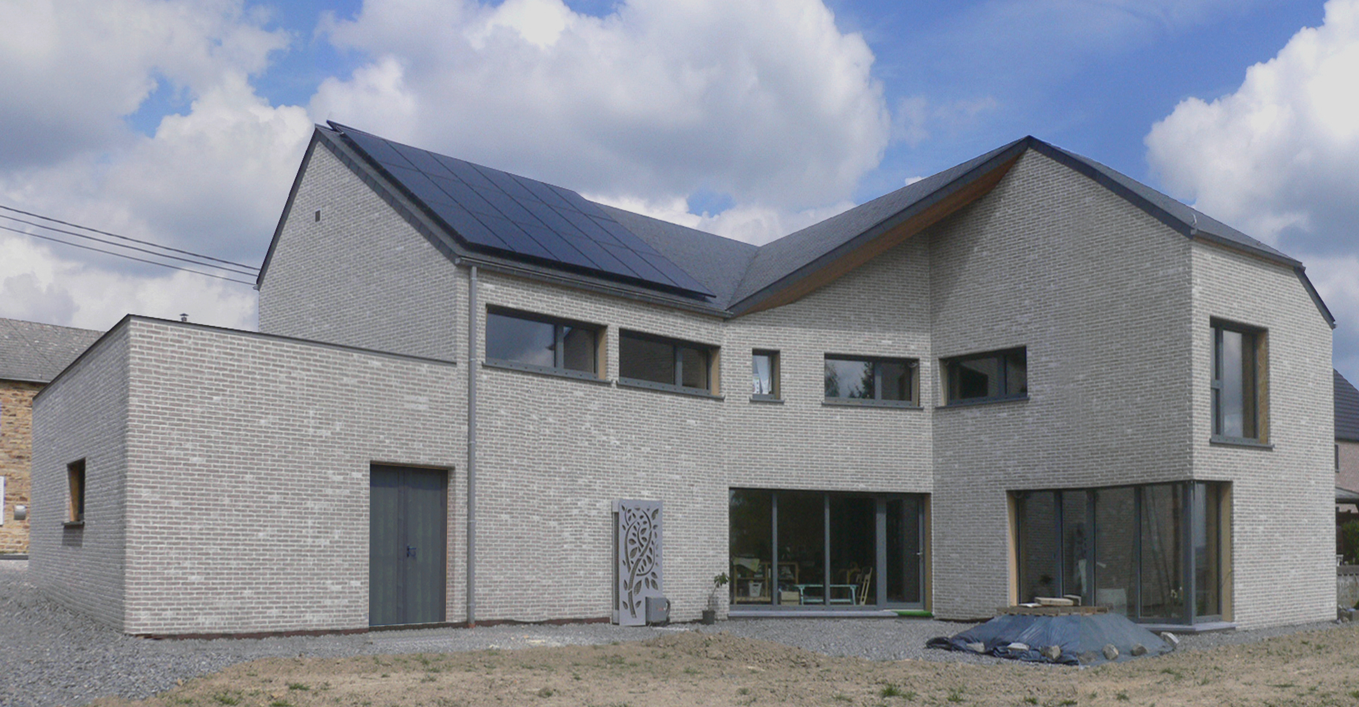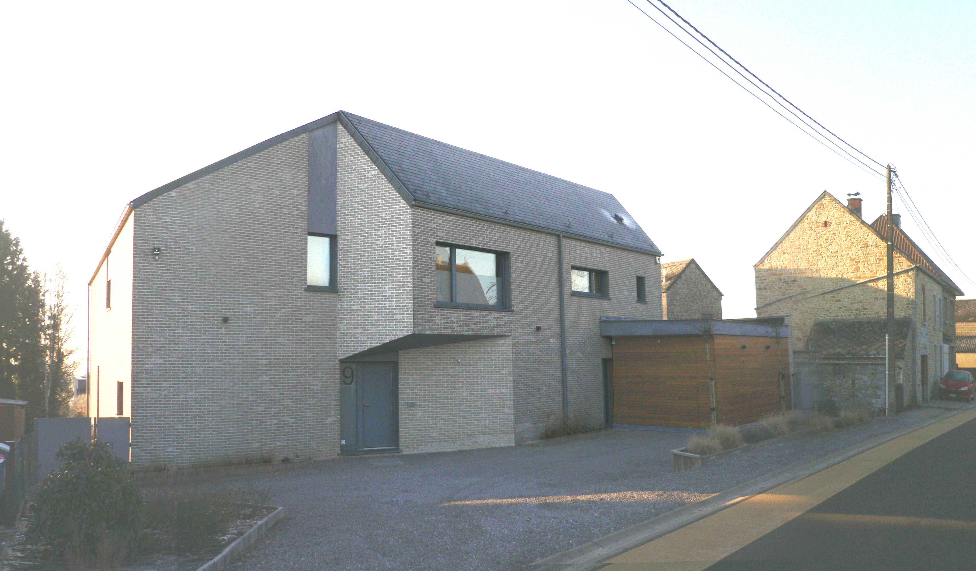 L'utilisation de l'espace s'accorde aux rythmes naturels en les structurant suivant la trajectoire du soleil. Les chambres profitent de la lumière du matin tandis que le séjour reçoit les rayons du soleil couchant. La construction est habillée d'un parement en brique de ton gris, conférant à l'ensemble un aspect très minéral rappelant les paysages formé par les nombreuses carrières de la région.