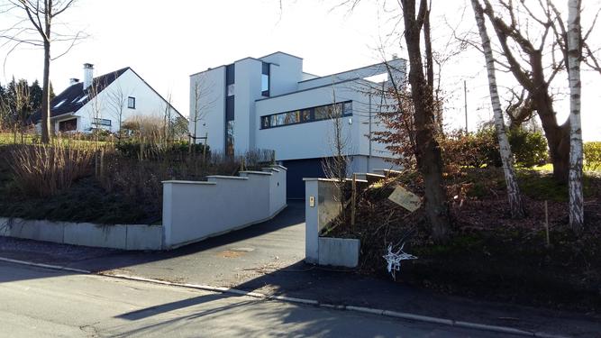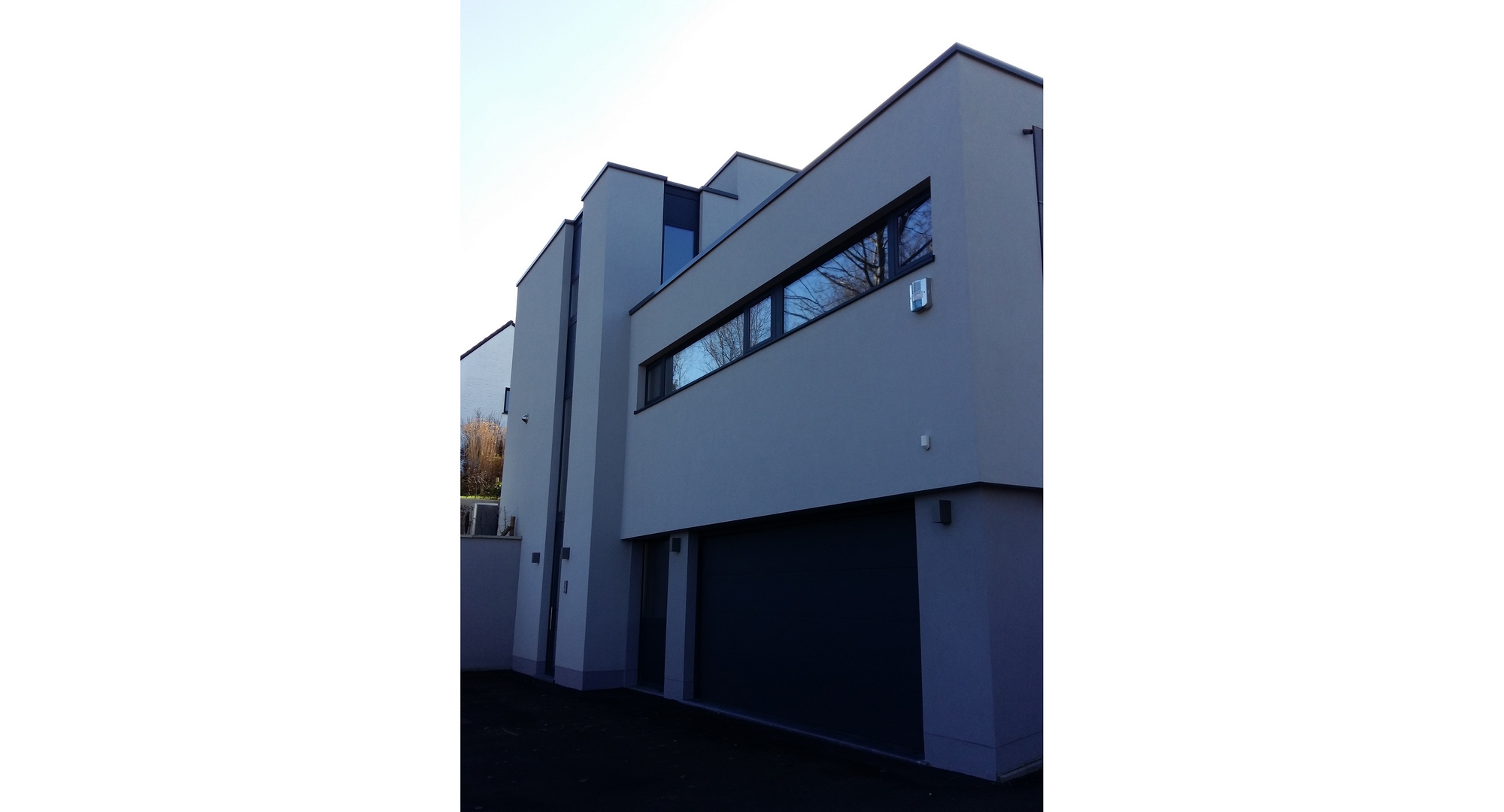 - L'habitation a été conçue de façon à profiter au maximum des gains solaires au Sud et s'intégrer sur ce terrain avec un dénivelé important depuis la rue.