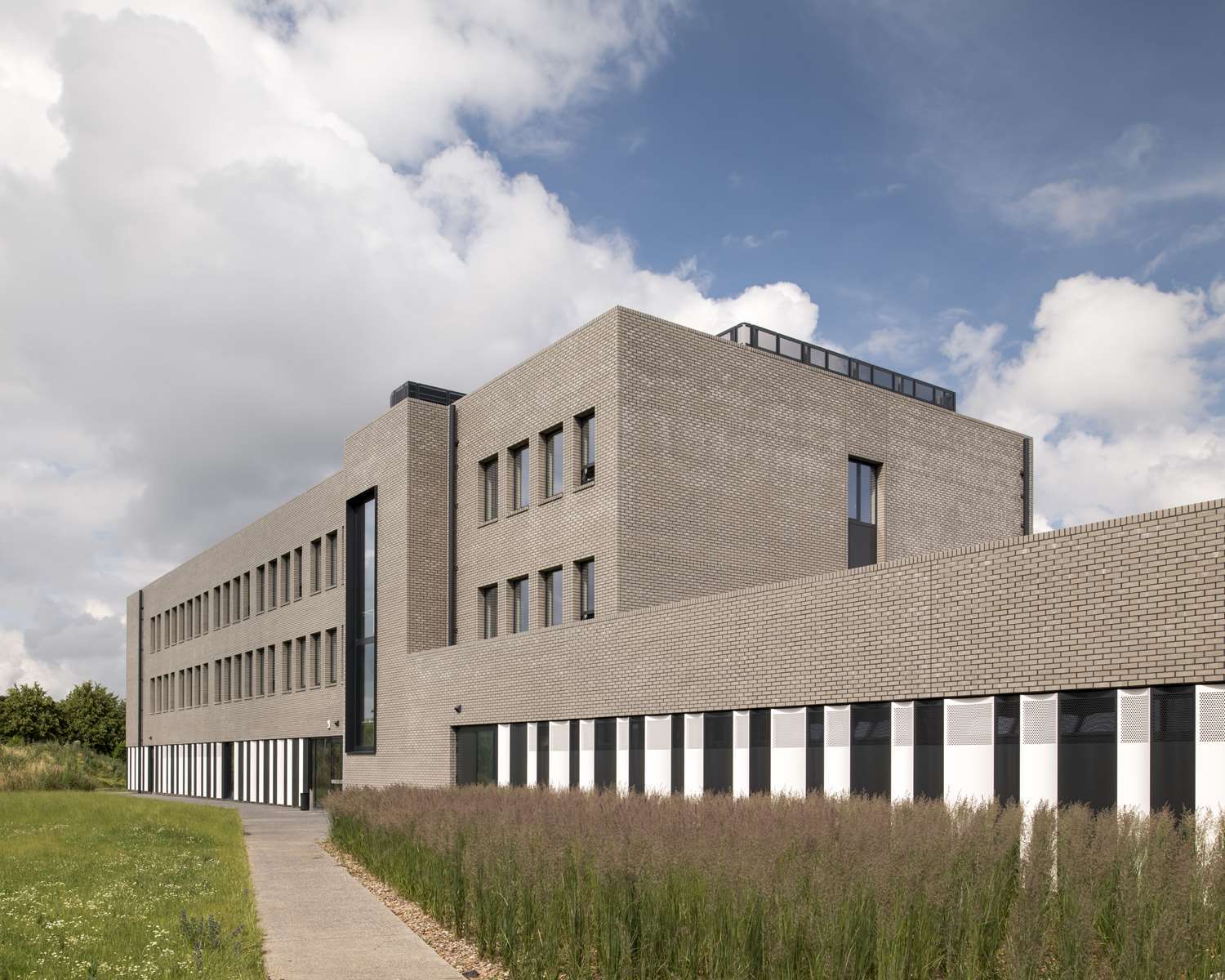 Les choix conceptuels se sont orientés vers un dispositif compact et rationnel pour en optimiser le fonctionnement et les coûts de construction et d’entretien. Une attention particulière a été portée sur la qualification des espaces, sur leur cohabitation et sur les liens entre eux. Les longues façades donnent des vues agréables sur le site arboré. Les classes donnant sur la rue accueillent des fonctions « vivantes » telles que le dessin et la bureautique appliquée : le savoir-faire et la spécificité de l’école sont montrées. Nous avons mis l’accent sur une distribution logique et claire des différents sous-ensembles programmatiques afin d’offrir un bâtiment accueillant, facile d’utilisation et rassurant.