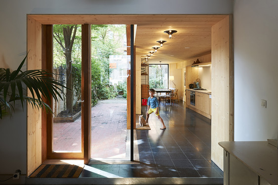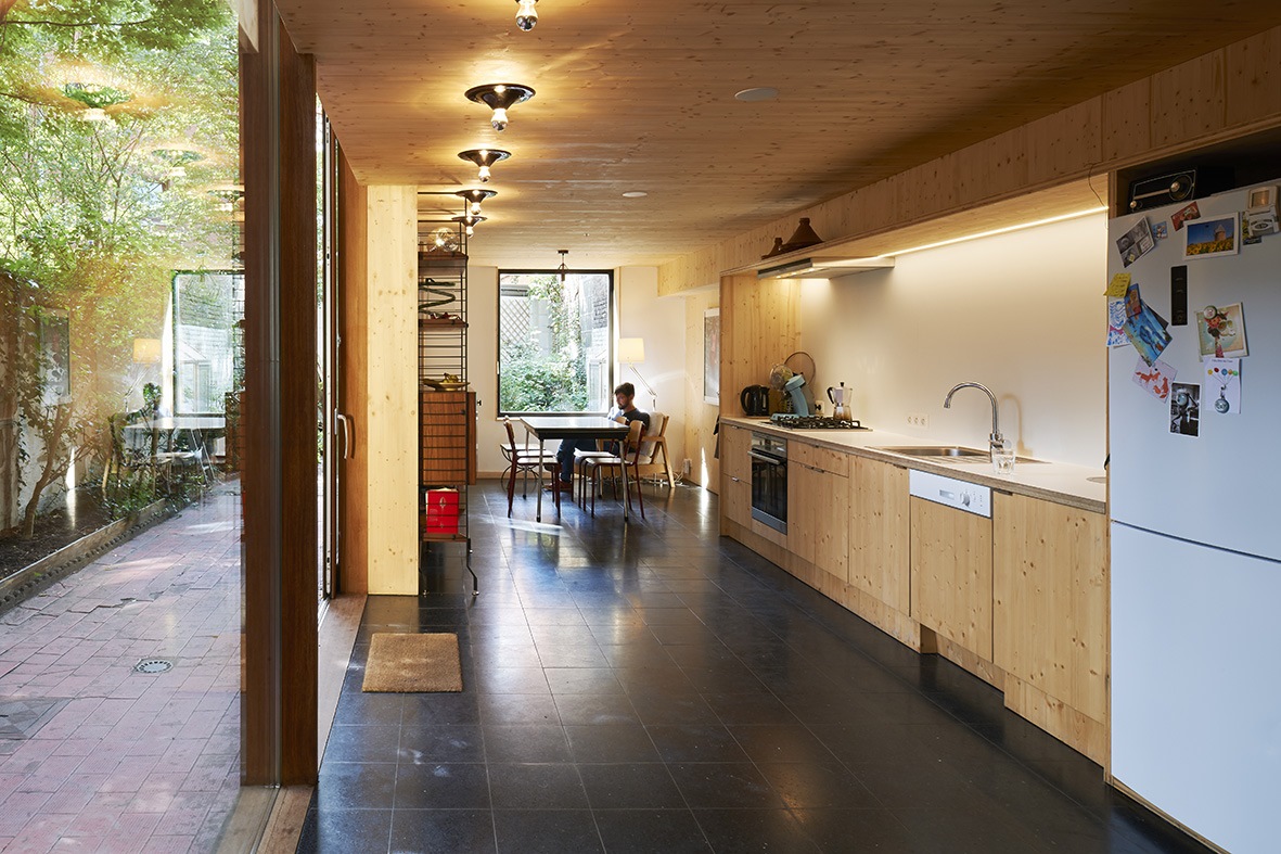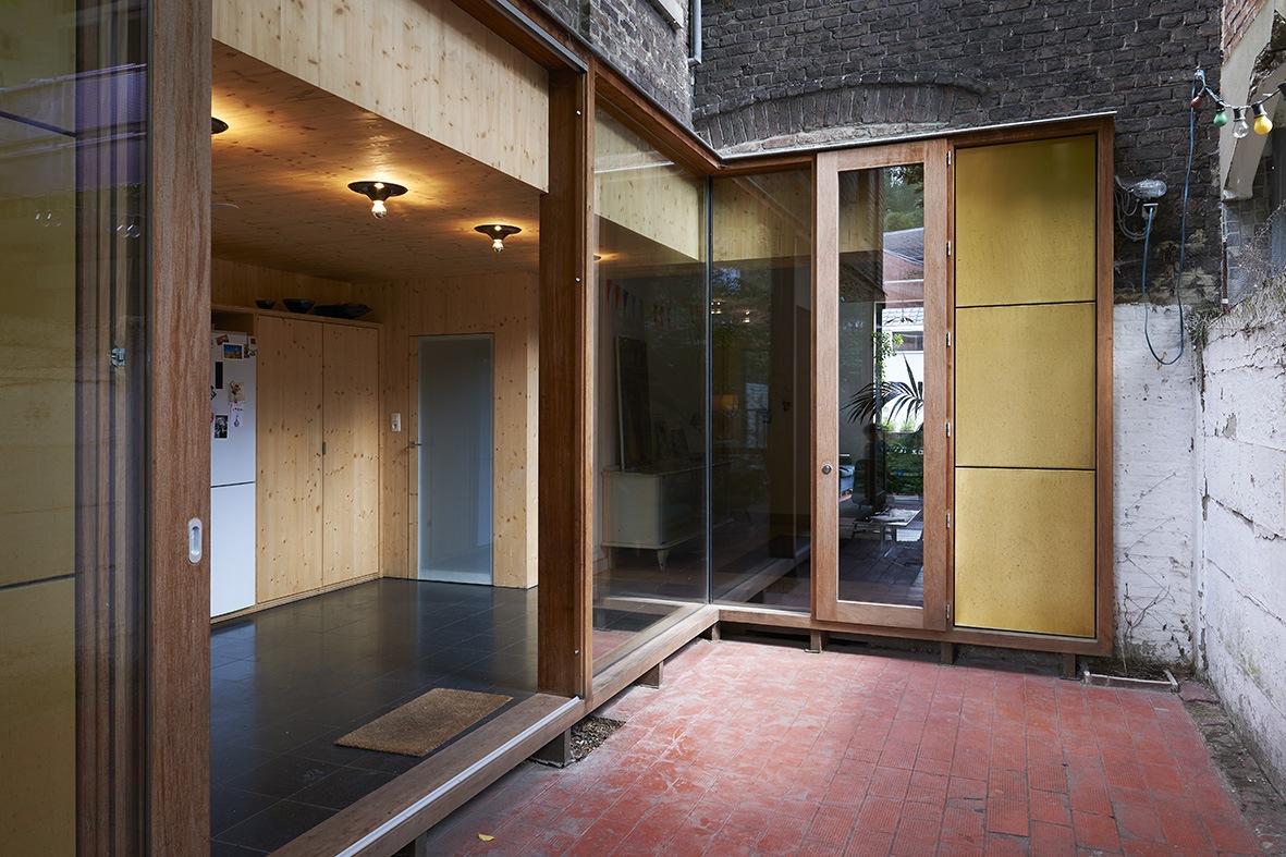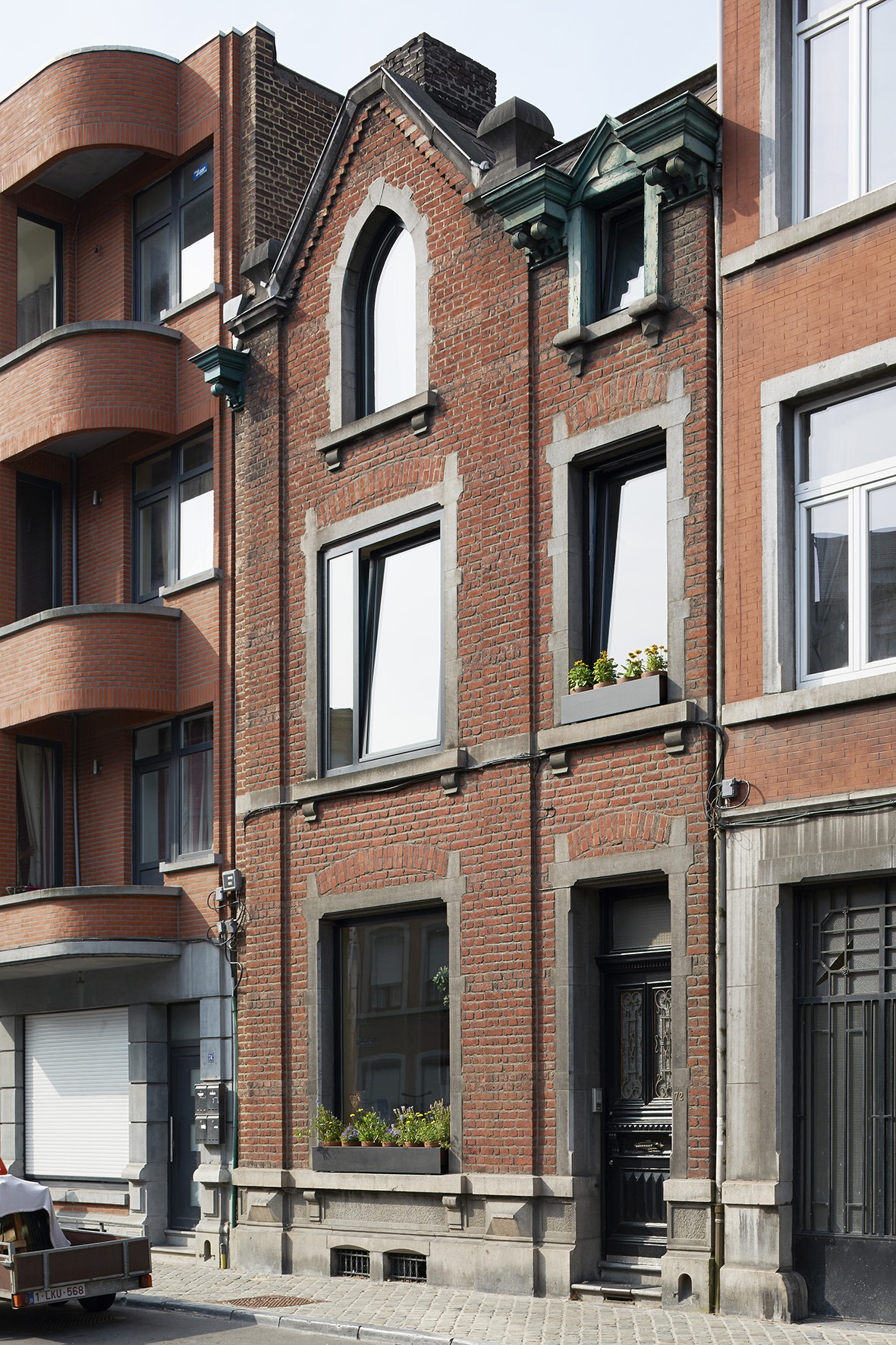 - Cette maison liégeoise typique du XIXe siècle n’était plus adaptée au mode de vie actuel de ses occupants (famille avec deux enfants) : une annexe abritant de petites pièces (WC, cuisine, buanderie), séparée des pièces de vie du bâtiment principal, en déficit de lumière naturelle. La transformation a été opérée dans l’enveloppe du bâtiment, prenant corps sur les marques de l’existant et jouant sur ses limites physiques, avec une intervention structurelle radicale pour lier les pièces et vider le[...]