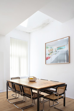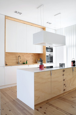 - Implanté au sein d’un des quartiers les plus denses et cosmopolites du pays dans ce que l’on appelle communément le bas de Saint-Gilles, la maison présente le plan type d’une maison bruxelloise à la façade éclectique polychrome. Le programme consiste à réaliser deux unités d’appartements aménagés sur 5 niveaux. Les axes de développements principaux sont la composition par le vide, et la simplicité des lignes pour obtenir une qualité spatiale optimale. Afin de concevoir des appartements de plus grande dimension, des extensions ont été réalisées au rez-de-chaussée / rez-jardin et en toiture. La façade arrière a été largement ouverte pour favoriser l’apport de lumière naturelle et les vues vers l’intérieur d’îlot. Les espaces communs ont été réduits à leur plus simple expression de manière à limiter les espaces résiduels au profit des espaces de vie. Les différentes fonctions, matérialisées par des éléments de mobilier au langage commun, viennent ponctués des espaces libérés. Le projet tente d’exprimer par l’utilisation de matériaux simples, l’importance prépondérante de la mise en oeuvre sur la matière tant dans les finitions que pour le mobilier intégré.[...]