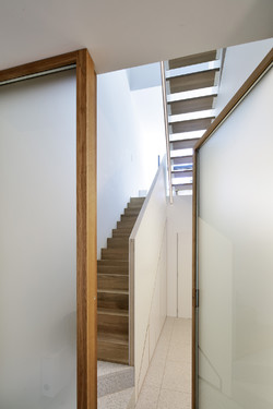 La travée de droite se compose d'espaces d'avantage introvertis permettant de séquencer les espaces et d’offrir une intimité à chacun ; à chaque moment. La travée de droite est bordée de la zone technique regroupant toutes les pièces d’eau.