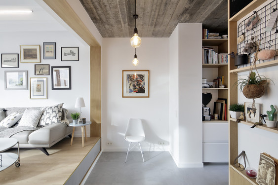 - Situé au 4ème étage d’un immeuble des années 60, le studio profite, dans sa situation existante, d'une double orientation et de vues dégagées sur un environnement très vert.[...]